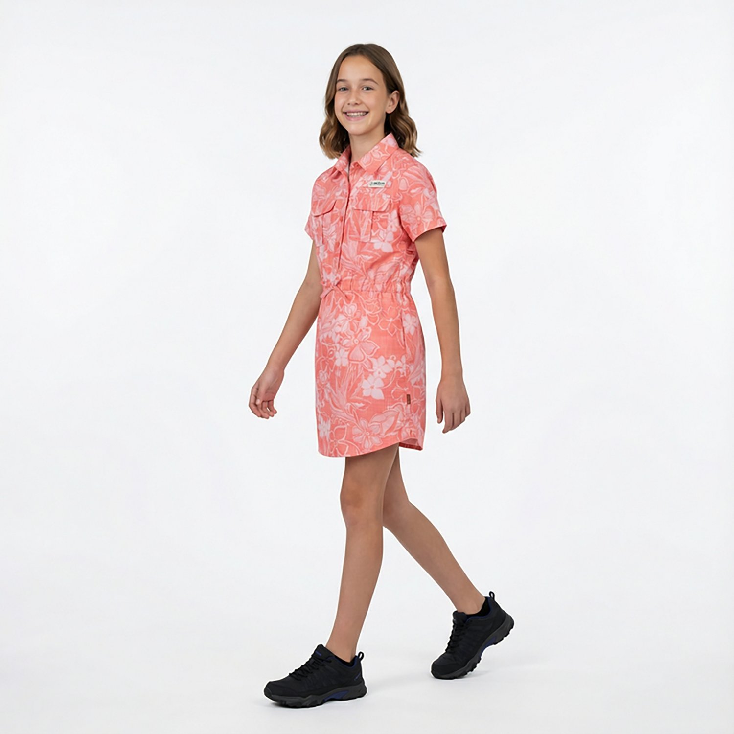 Look your best in the Magellan Girls' Caddo Lake Printed Dress. It is made of 100% polyester. The moisture wicking technology keeps you dry, and its elastic waistband allows for adjustability. The UPF 25 rating protects you from the sun.