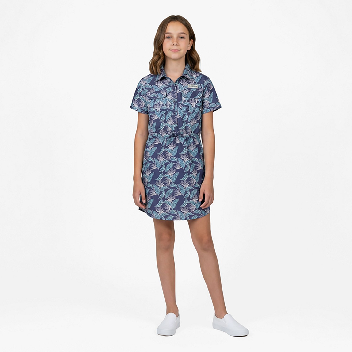 Look your best in the Magellan Girls' Caddo Lake Printed Dress. It is made of 100% polyester. The moisture wicking technology keeps you dry, and its elastic waistband allows for adjustability. The UPF 25 rating protects you from the sun.