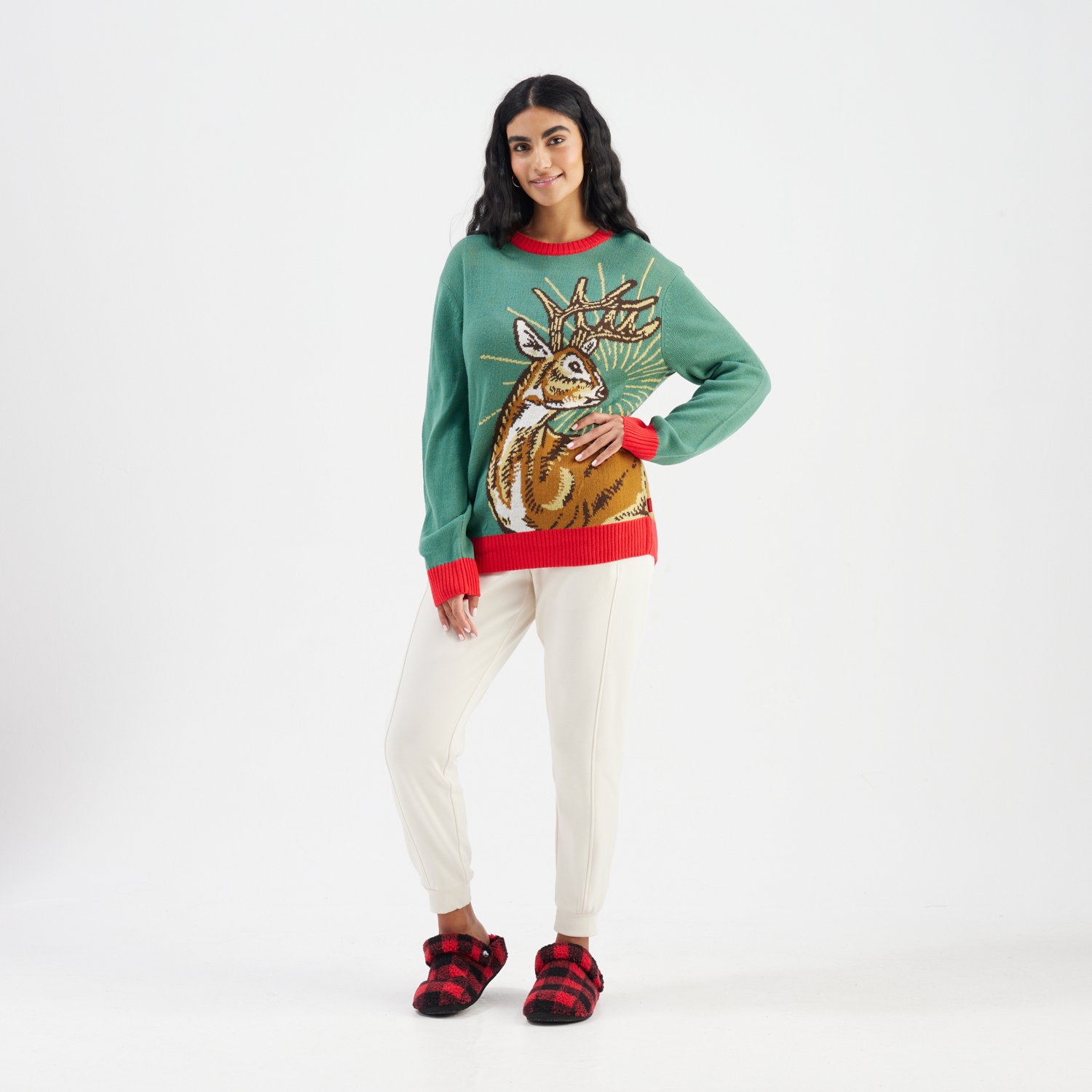 Get in the spirit with the Magellan Outdoors Women's Holiday Reindeer Sweater. The acrylic jacquard knit fabric provides a comfortable feel, while the graphic design offers a fun look.