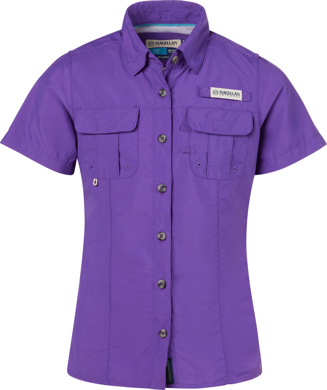 Look your best in the Magellan Girls' Laguna Madre Short Sleeve Fishing Shirt. Its moisture wicking technology wicks away sweat to keep you dry. The shell is made of 100% nylon, and its lining is made of 100% recycled polyester. The UPF 30 rating protects your from the sun.