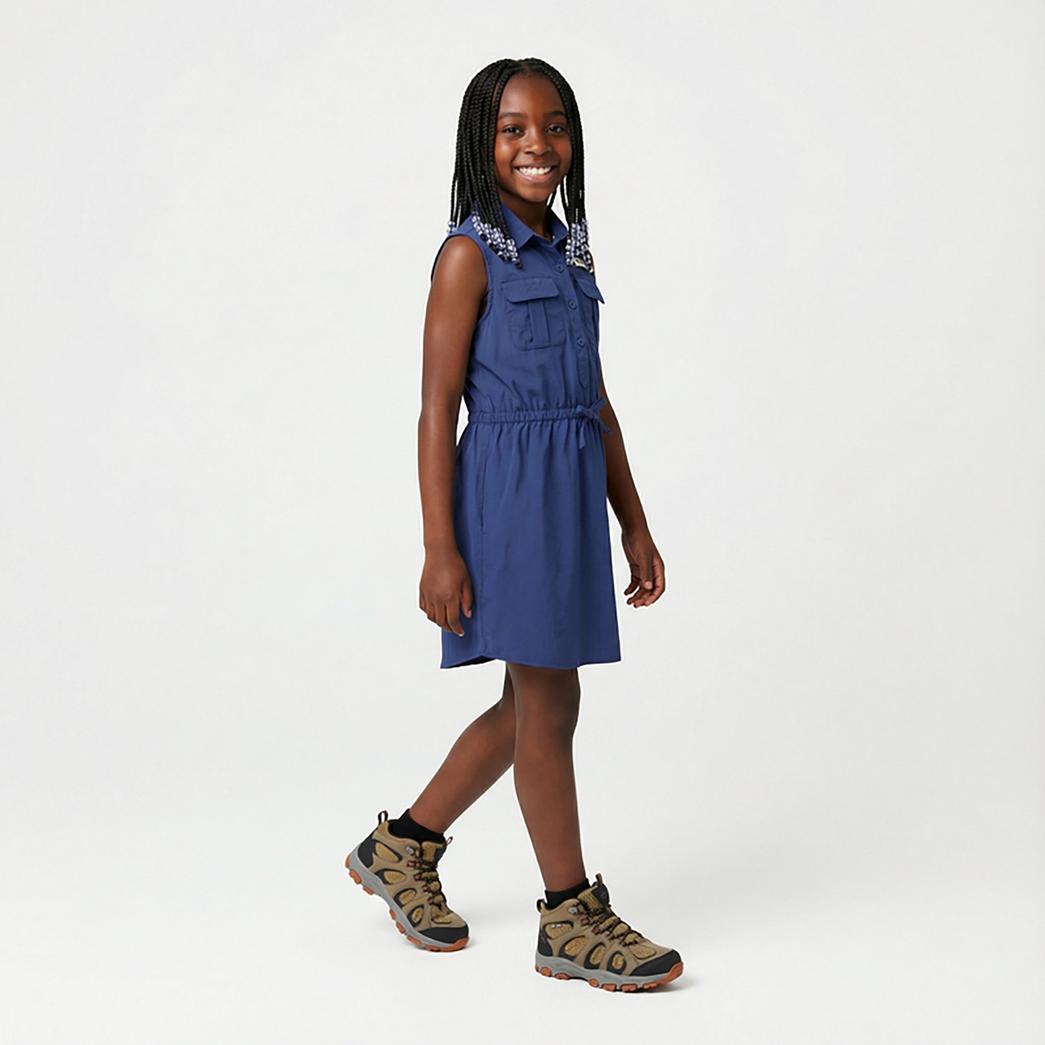 Look your best in the Magellan Girls' Laguna Madre Sleeveless Dress. Its moisture wicking technology keeps you dry. The shell is made of 100% nylon, and its lining is made of 100% recycled mesh. The UPF 30 rating protects you from the sun.