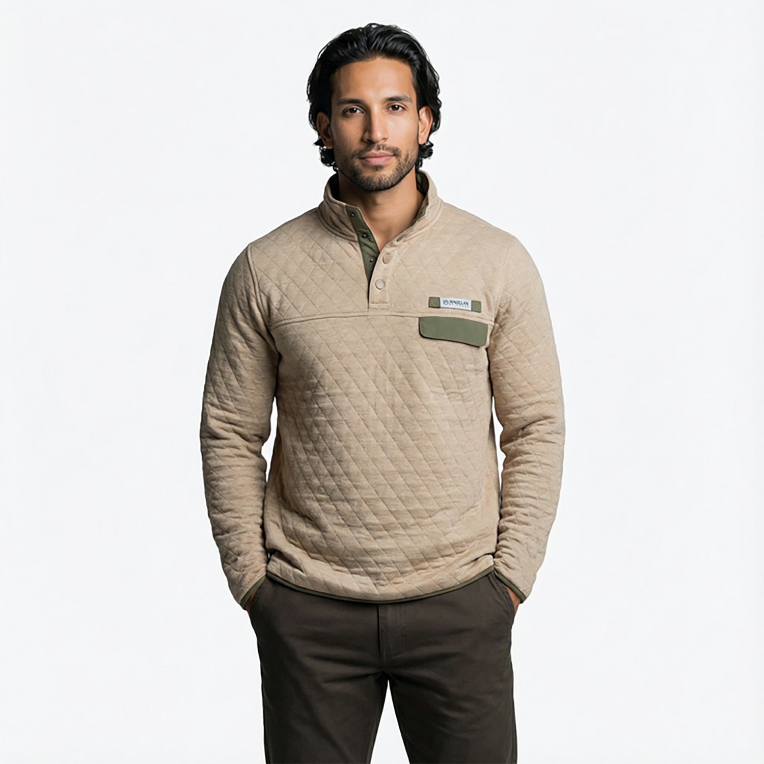 Show off your style around the fire with the Magellan Outdoors Men's Campfire Quilted Long Sleeve QS Top. The 100% Cotton Heather Quilted Jersey fabric offers a soft feel, and the insulation enhances warmth. The pocket flap provides room to conceal small items.