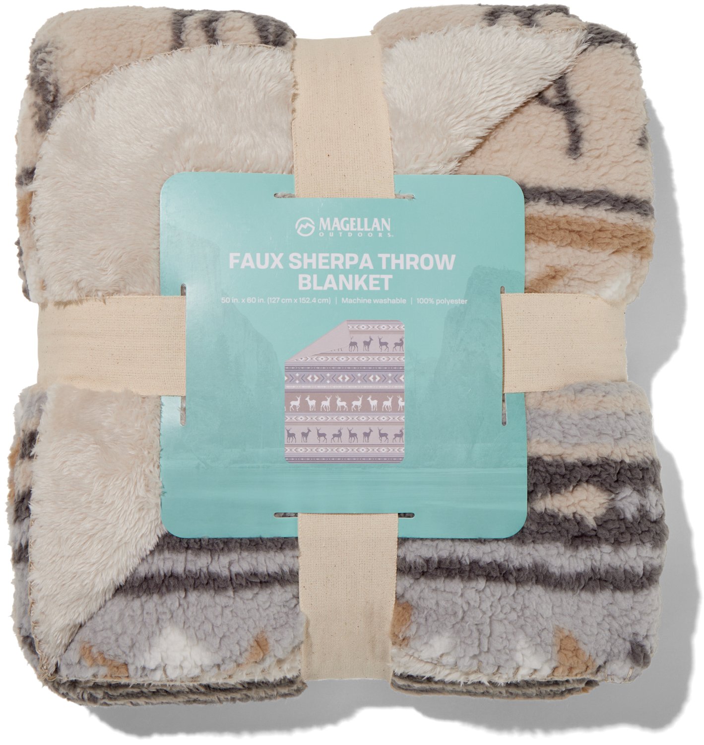 Wrap yourself in warmth and comfort with the Magellan Outdoors Sherpa and Solid Polar Bear Throw Blanket. Made from durable 100% polyester, this blanket features plush faux sherpa fabric on one side for a cozy feel and a stylish polar bear print on the other. Its reversible design adds versatility, allowing you to switch up your look with ease. Measuring 50 inches wide by 60 inches long, this throw is perfect for snuggling up on cold nights or bringing along for camping trips.