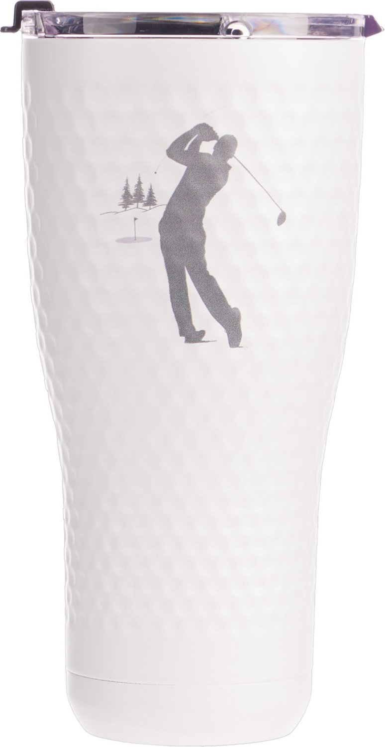 Keep your hot drinks hot and cold drinks cold while on the go with the Magellan Outdoors 30 oz Golf Throwback Tumbler. This stainless-steel tumbler is durable and features a sweatproof exterior that prevents condensation from forming so you stay dry. The locking lid helps keep contents contained inside the cup while on the move, and the double-wall vacuum insulation keeps drinks at the desired temperature for several hours.