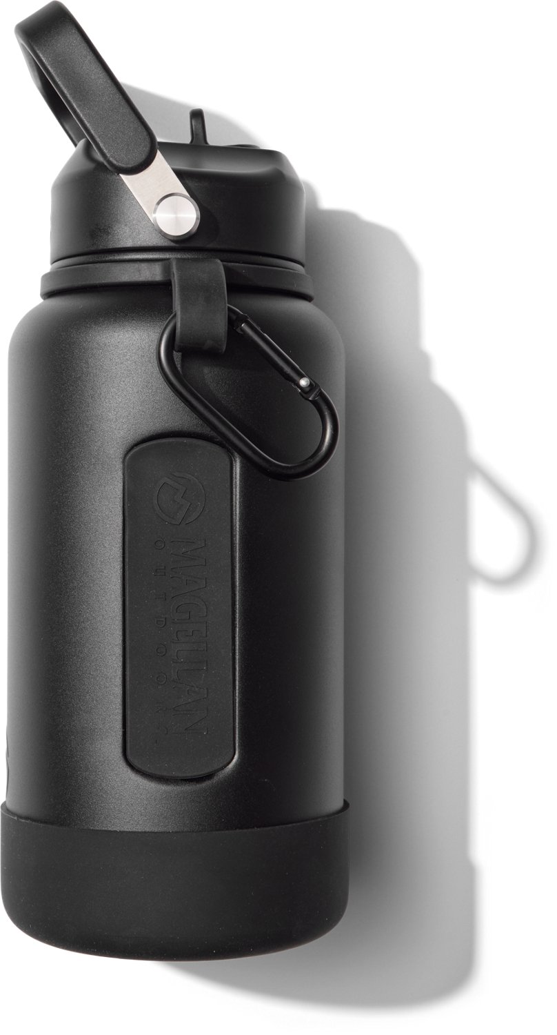 Stay hydrated with the Magellan Outdoors 48 oz Sports Jug. The stainless-steel construction resists corrosion, and the double-wall vacuum insulation keeps your drinks at the desired temperature. The silicone bottom adds stability.