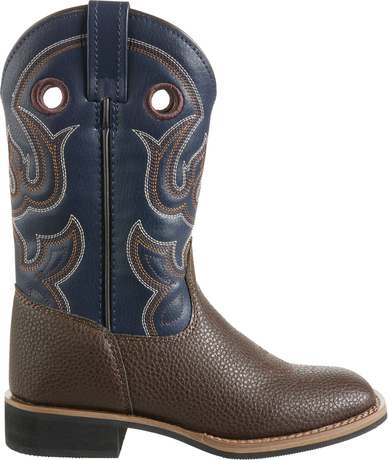 He can stylize his look with the Magellan Outdoors Boys' Ace II Western Boots. These boots are crafted from man-made materials with Western embroidery on the shafts. Rubber and EVA outsoles provide comfort and durability. EVA footbeds. Pull on.