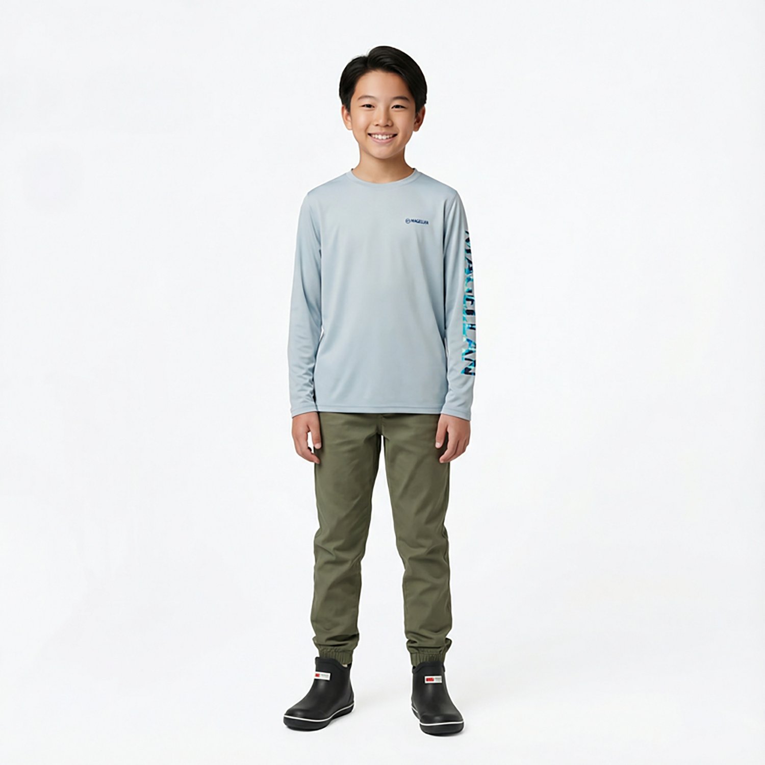 Kick back and wait for the fish to bite in the Magellan Outdoors Boys' Casting Crew Print Logo Fishing T-shirt The UPF 50+ protection helps keep your skin safe in the sun, and the 100% recycled polyester construction withstands wear and tear while feeling soft. A crewman logo print highlights a sleek appearance, and the moisture-wicking technology helps you stay cool and dry out on the water.