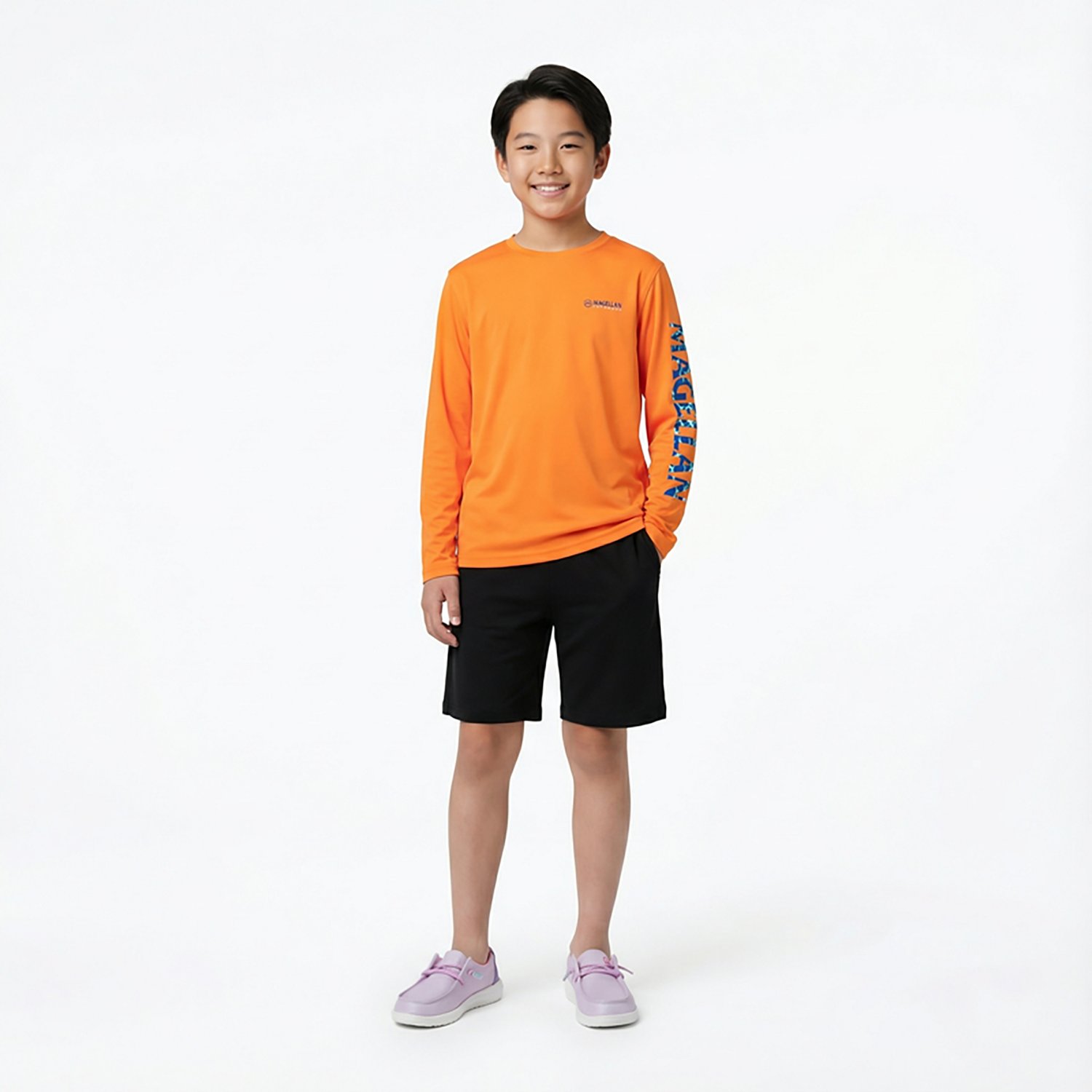 Kick back and wait for the fish to bite in the Magellan Outdoors Boys' Casting Crew Print Logo Fishing T-shirt The UPF 50+ protection helps keep your skin safe in the sun, and the 100% recycled polyester construction withstands wear and tear while feeling soft. A crewman logo print highlights a sleek appearance, and the moisture-wicking technology helps you stay cool and dry out on the water.