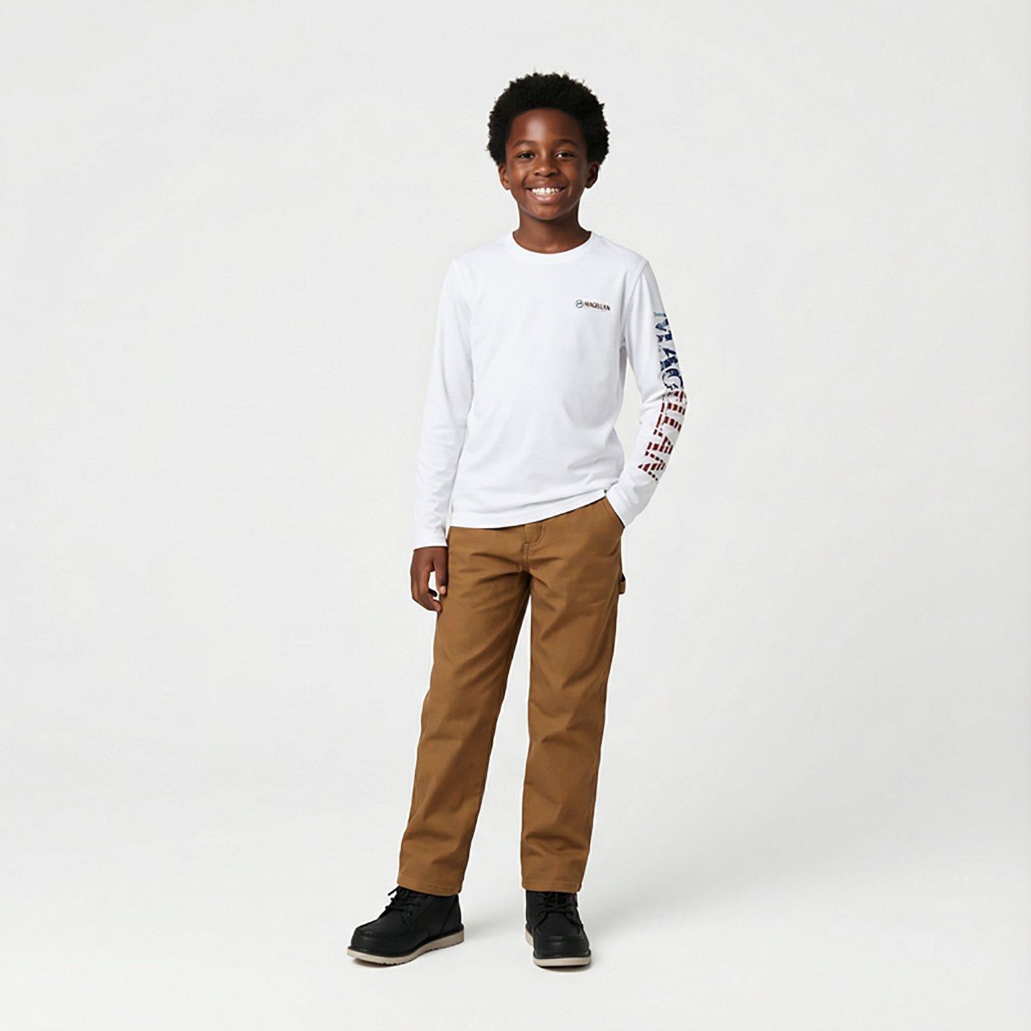 Kick back and wait for the fish to bite in the Magellan Outdoors Boys' Casting Crew Print Logo Fishing T-shirt The UPF 50+ protection helps keep your skin safe in the sun, and the 100% recycled polyester construction withstands wear and tear while feeling soft. A crewman logo print highlights a sleek appearance, and the moisture-wicking technology helps you stay cool and dry out on the water.