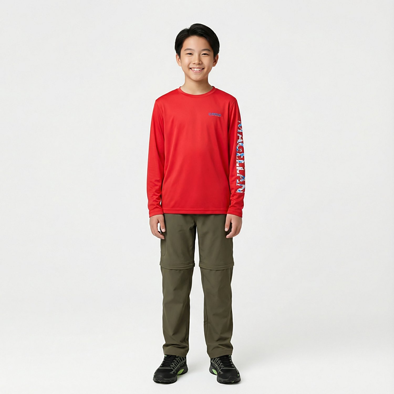 Kick back and wait for the fish to bite in the Magellan Outdoors Boys' Casting Crew Print Logo Fishing T-shirt The UPF 50+ protection helps keep your skin safe in the sun, and the 100% recycled polyester construction withstands wear and tear while feeling soft. A crewman logo print highlights a sleek appearance, and the moisture-wicking technology helps you stay cool and dry out on the water.