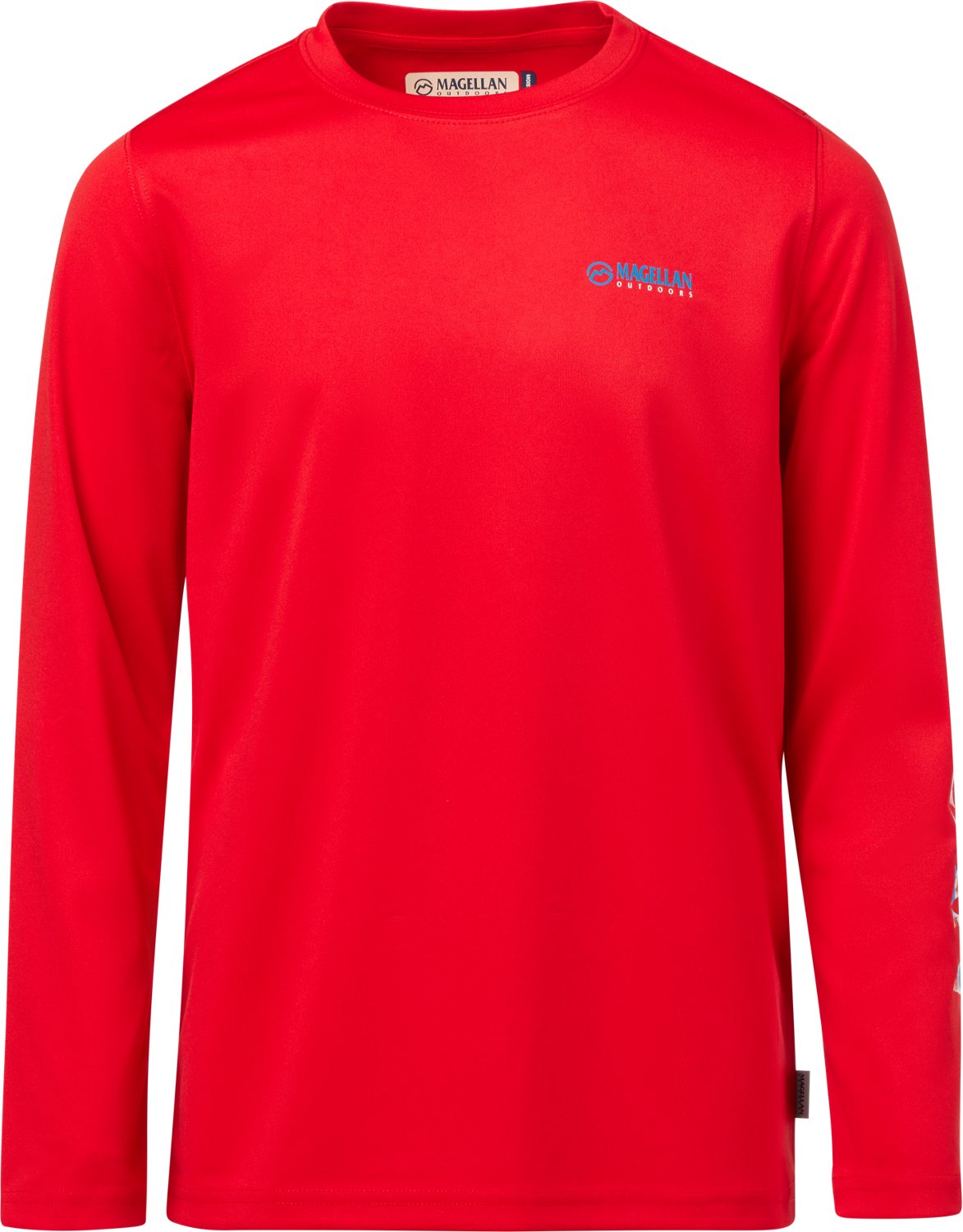 Kick back and wait for the fish to bite in the Magellan Outdoors Boys' Casting Crew Print Logo Fishing T-shirt The UPF 50+ protection helps keep your skin safe in the sun, and the 100% recycled polyester construction withstands wear and tear while feeling soft. A crewman logo print highlights a sleek appearance, and the moisture-wicking technology helps you stay cool and dry out on the water.
