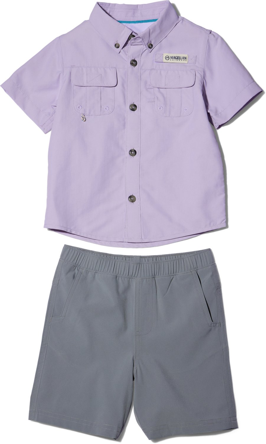 Get your little adventurer ready for the shore in the Magellan Outdoors Boys' Laguna Madre Short Sleeve Shirt and Shorts Set. The shirt and shorts feature moisture-wicking technology and UPF 30 protection to keep him feeling fresh and comfortable all day long. Quick-drying technology and a water-repellant finish help him stay dry.
