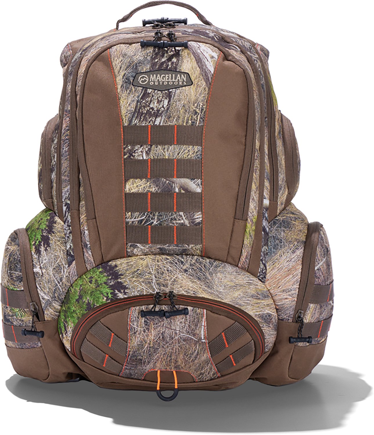 Prep for a rugged adventure with the Magellan Outdoors Brush Backpack. A spacious main compartment makes it easy to stow all of the equipment you'll need the most, and other storage features, including a rain fly storage compartment and hydration reservoir compatibility, offer even more convenience. Plus, you'll stay concealed thanks to Mossy Oak Brush® camo.
