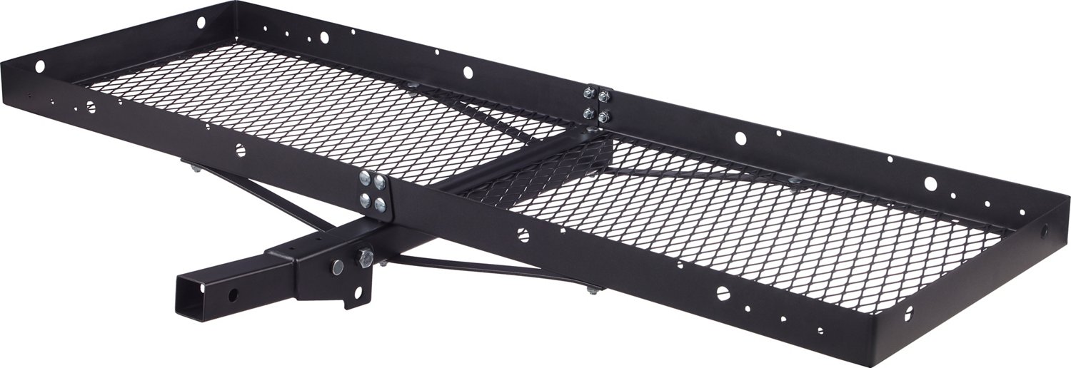 Tow your gear on the Magellan Outdoors Folding Hitch Carrier, which supports loads weighing up to 500 pounds. The corrosion-resistant finish guards against wear, and the tie-down holes help keep your cargo secure while you're en route.