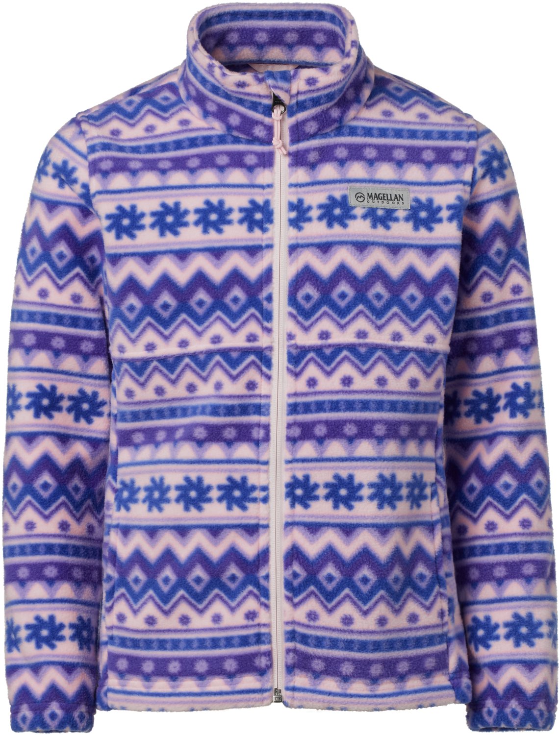 Ensure your little one stays warm when they wear the Magellan Outdoors Girls' Arctic Fleece Printed Jacket. Its body is made of 100% recycled polyester. The synthetic insulation helps retain heat, and its double sided fleece lining creates a comfortable wear. The waterproof and water resistant protect helps keep them dry.