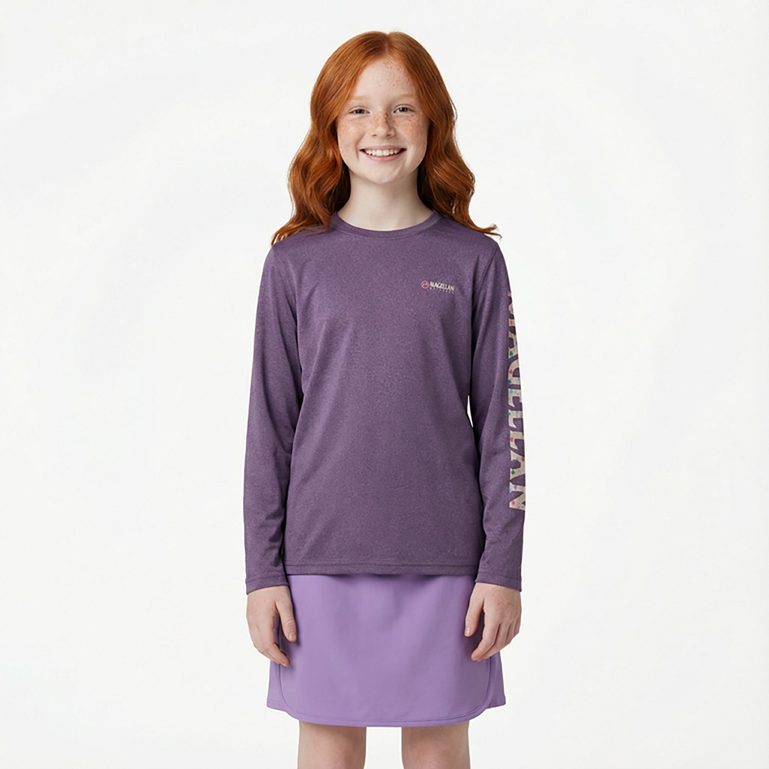 She can head to the boardwalk in the Magellan Outdoors Girls' Caddo Lake Logo Long Sleeve T-shirt. This T-shirt is made from a recycled polyester blend for durability. The moisture wicking technology helps keep her dry, while the silicone screen-printed graphic adds a fun look.
