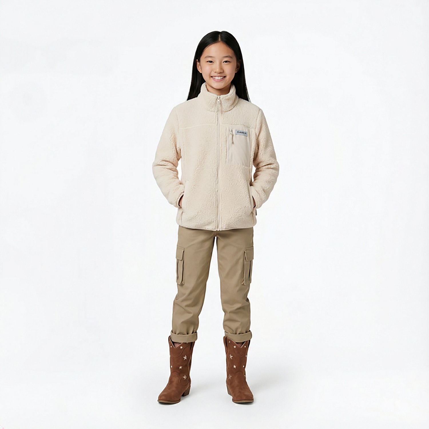 Warmth meets comfort with the Magellan Outdoors Girls’ Campfire Sherpa Fleece Jacket. The polyester Sherpa fleece fabric provides a warm and comfortable feel, while the pockets keep your essentials close.