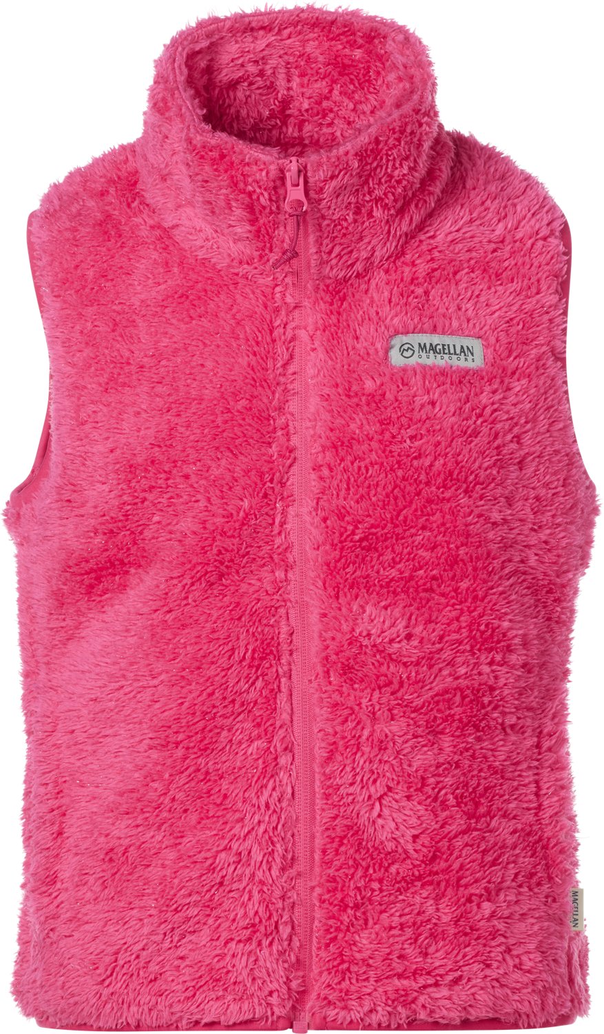 Ensure your little one stays warm when they wear the Magellan Outdoors Girls' Campfire Sherpa Vest. It is made of 100% polyester. The sleeveless design allows them to layer with their favorite shirt or sweater, and its collar neckline provides additional protection against the elements. The full zip closure allows for an easy on and off.