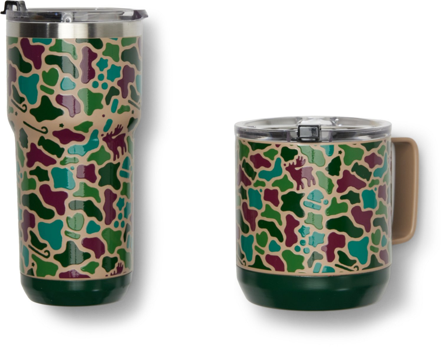 Enjoy your favorite beverages in the wilderness with a Magellan Outdoors Holiday Camo Tumbler and Mug Market Set. The durable stainless-steel sidewalls are BPA-free and lined with copper to ensure a pure taste. A locking lid prevents spills, while vacuum insulation keeps your drink at the perfect temperature for enjoyment.