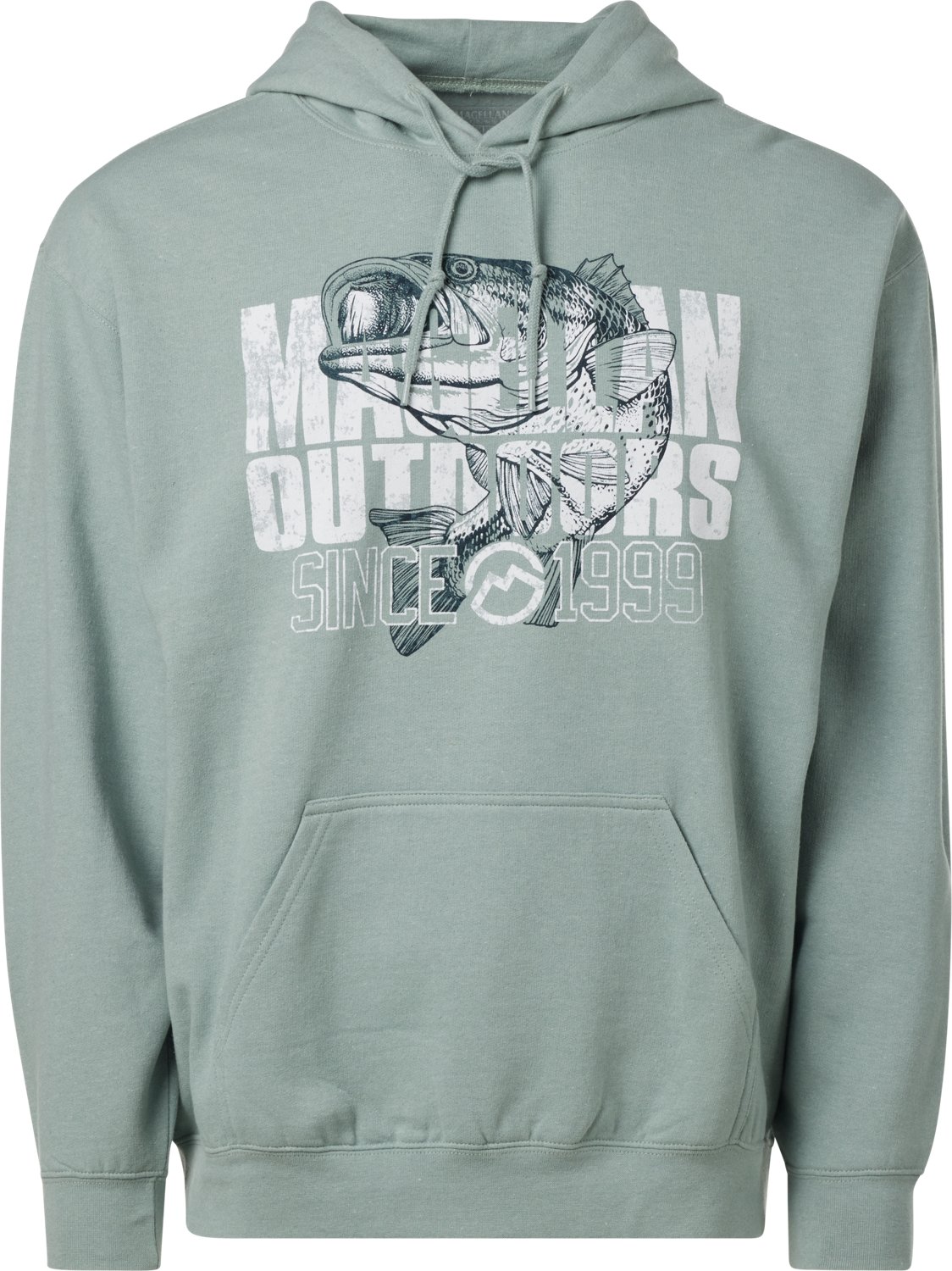 Magellan Outdoors graphic screen-printed on chest with large bass