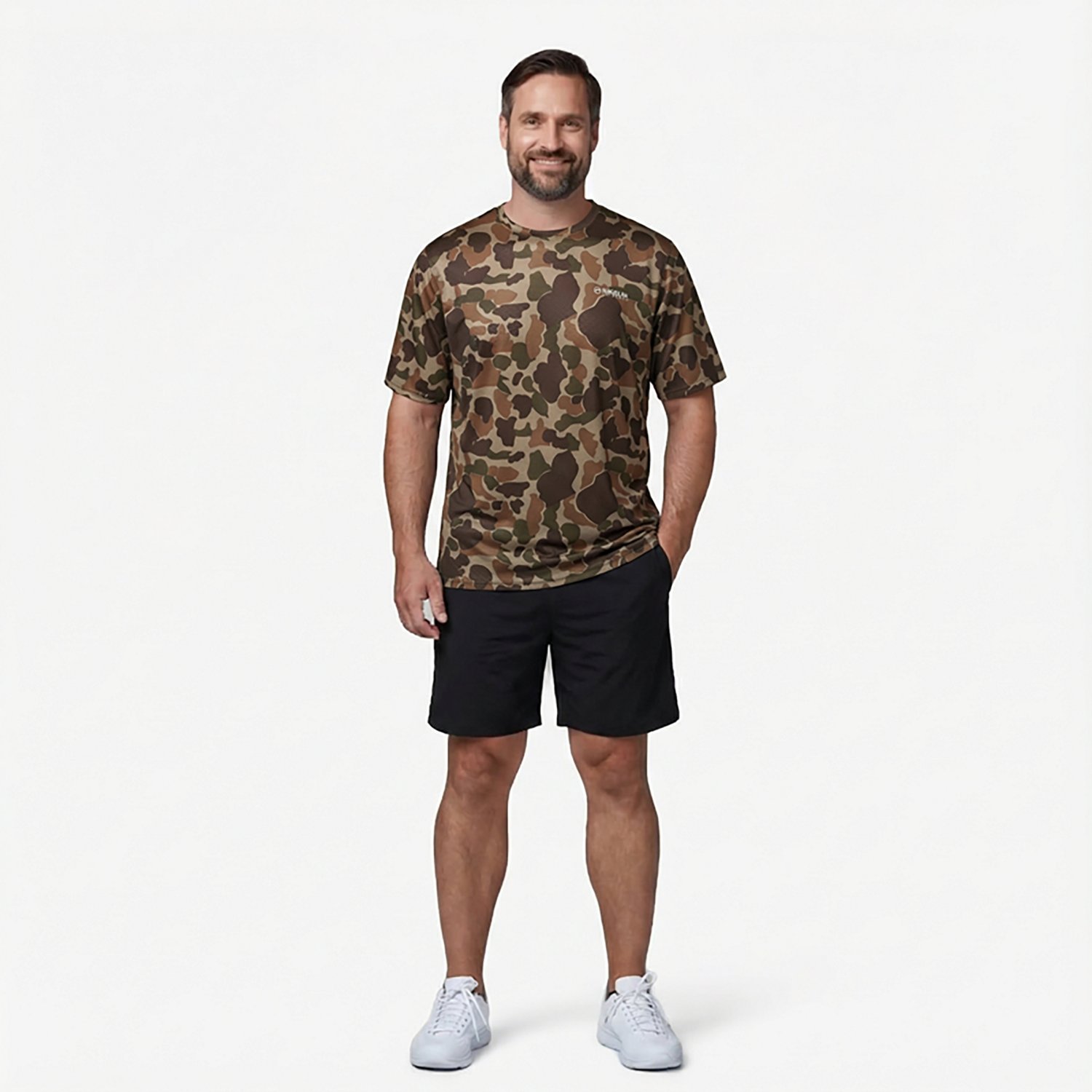 • Camo style and logo print highlight your outdoorsy side
