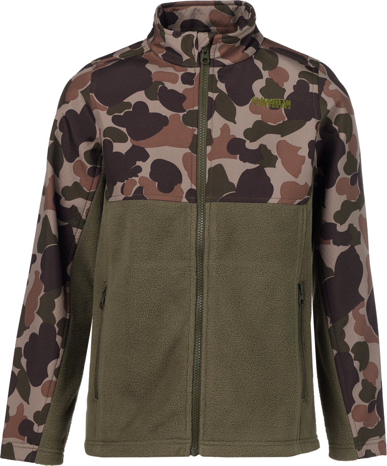 Head out hunting in the Magellan Outdoors Hunt Gear Youth Boone Fleece Jacket. This midweight jacket has a 100% polyester construction that withstands the elements and UPF 30+ protection that guards against harmful sun rays. The camo print provides concealability in the field.