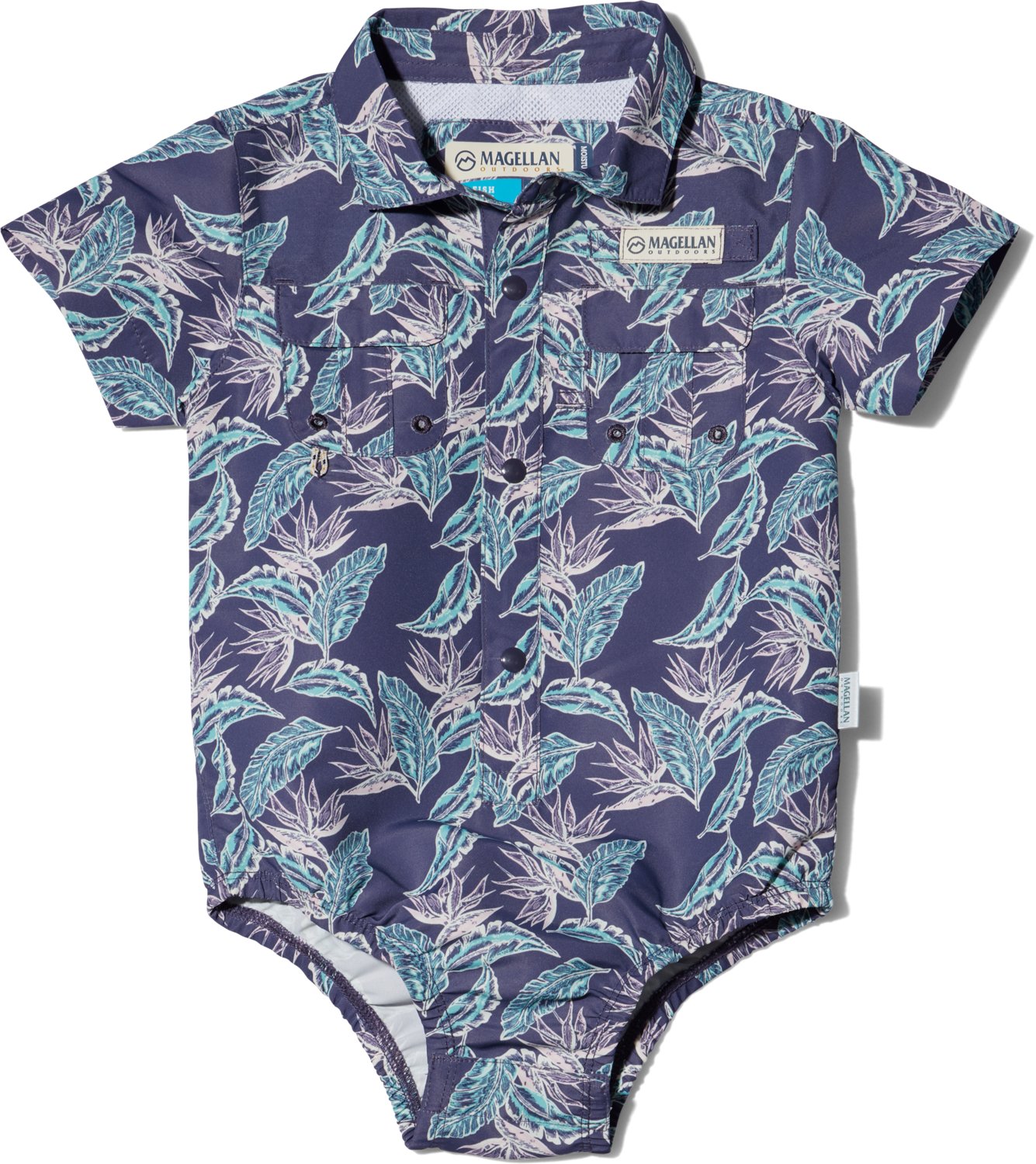 Get your little one ready for the day with the Magellan Outdoors Infant Boys' Laguna Madre Print Onesie. The woven polyester mesh fabric provides a comfortable feel, while moisture wicking technology helps keep him cool and dry. Built-in UPF 30 sun protection shields against harmful UV rays.
