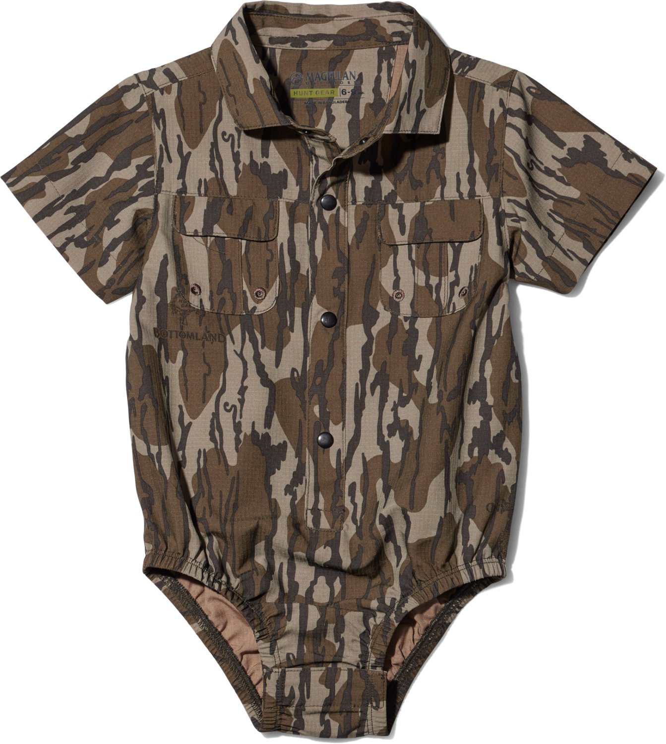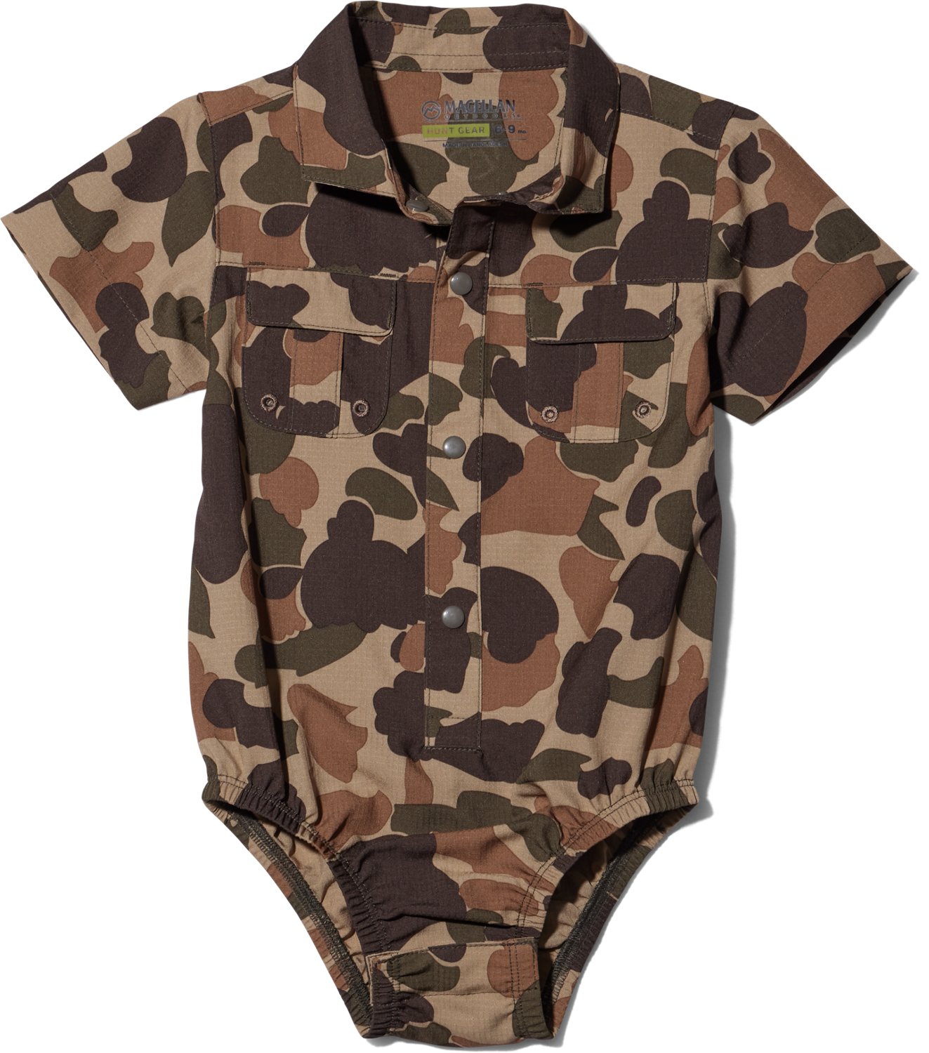 Keep your little outdoorsman cozy in this Magellan Outdoors Infants' Hunt Gear Lightweight Ripstop Onesie. It is made of 90% polyester and 10% spandex for durability and flexibility, and the lightweight ripstop construction adds durability.