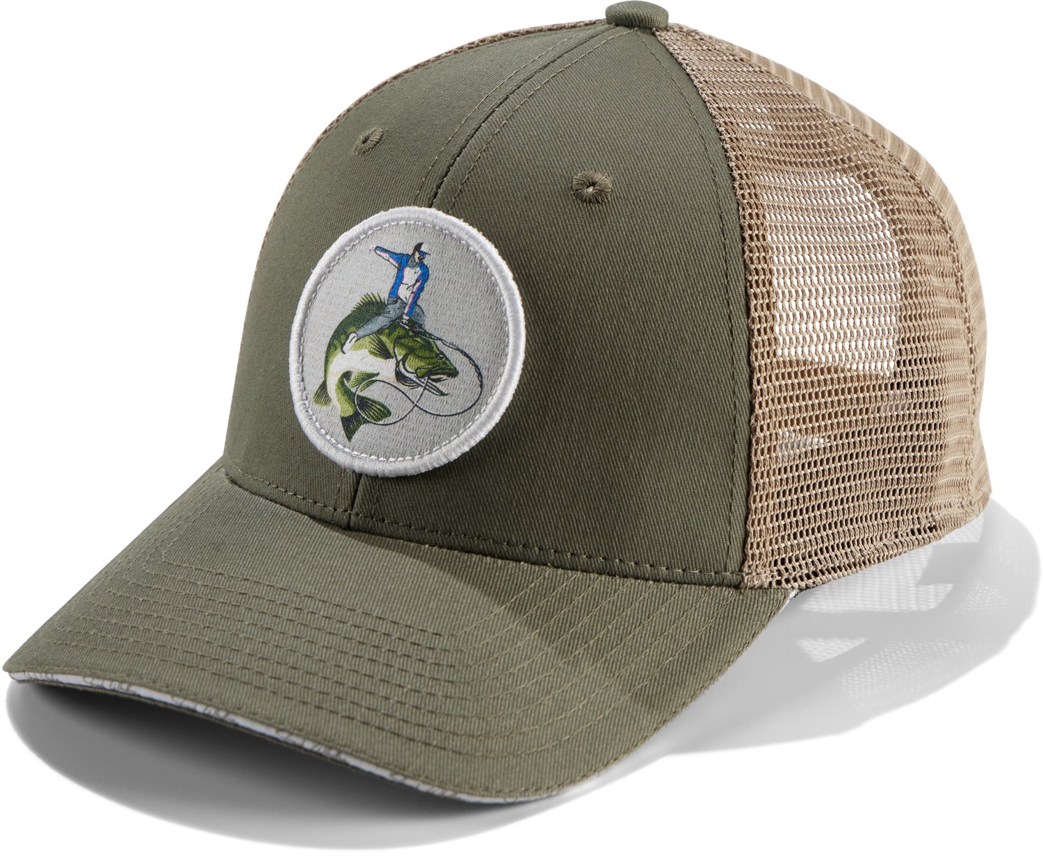 Protect your head from the sun with the Magellan Outdoors Jacob Wheeler Bass Cowboy Trucker Hat. Its trucker design enhances breathability, and the bass graphic shows off your love of fishing.