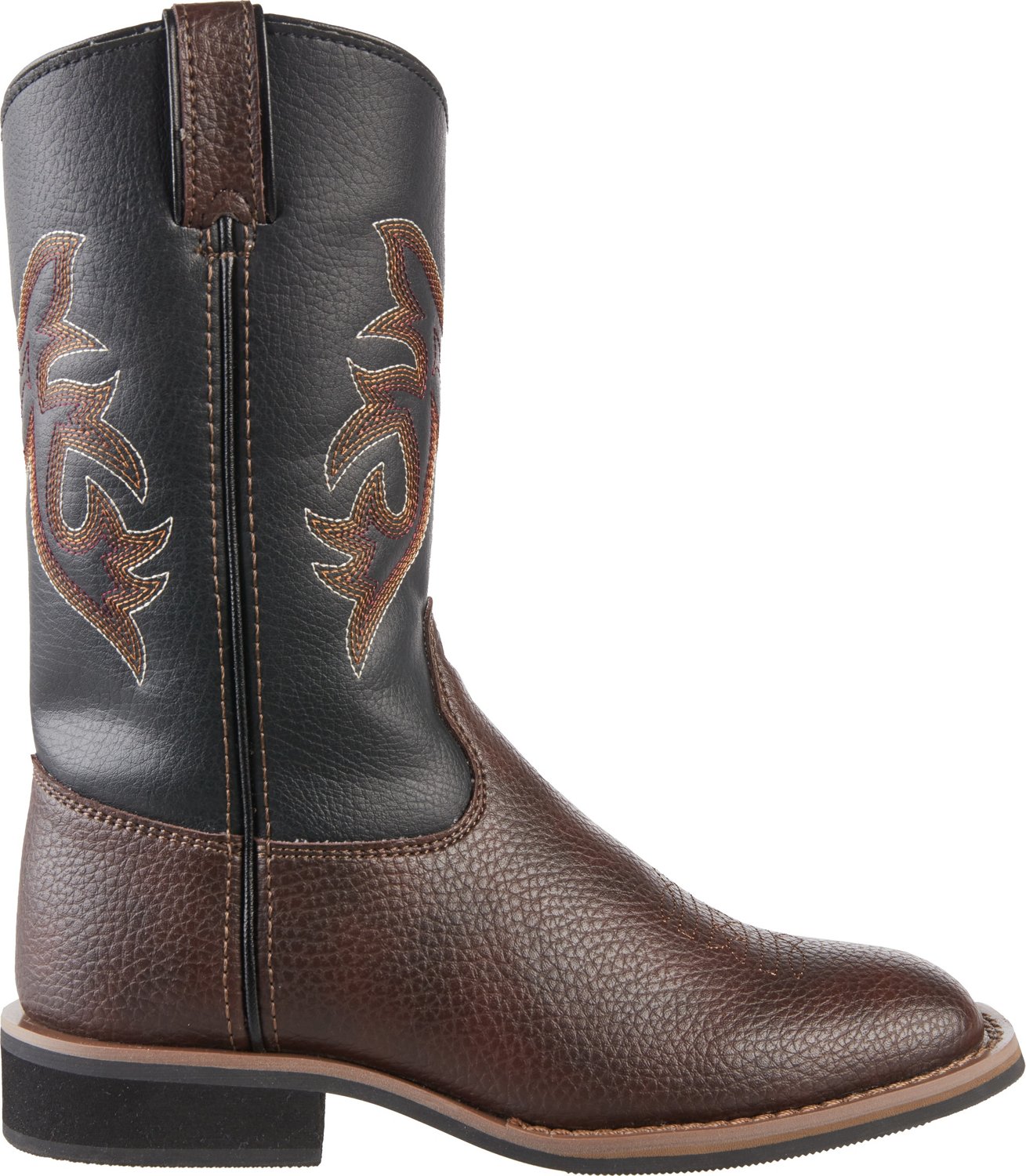 Step into the day with style underfoot when you wear the Magellan Outdoors Kids' Ace PSGS Western Boots. The man-made material uppers feature western-style embroidery on the shafts for a stylish appearance, while the die cut EVA footbeds provide comfort and the rubber and EVA outsoles offer durability.