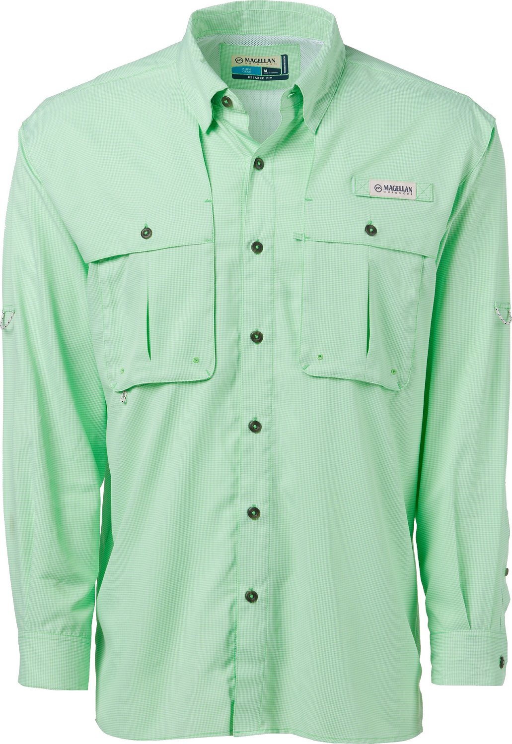 The fish are sure to be biting today, so suit up in the Magellan Outdoors Men's Aransas Pass Mini Check Long Sleeve Fishing Shirt and prepare to cast the day away. Brave summer heat with help from the moisture management tech, and ensure your skin stays safe with UPF 30 sun protection. Muggy weather is made more comfortable with this shirt's integrated ventilation.