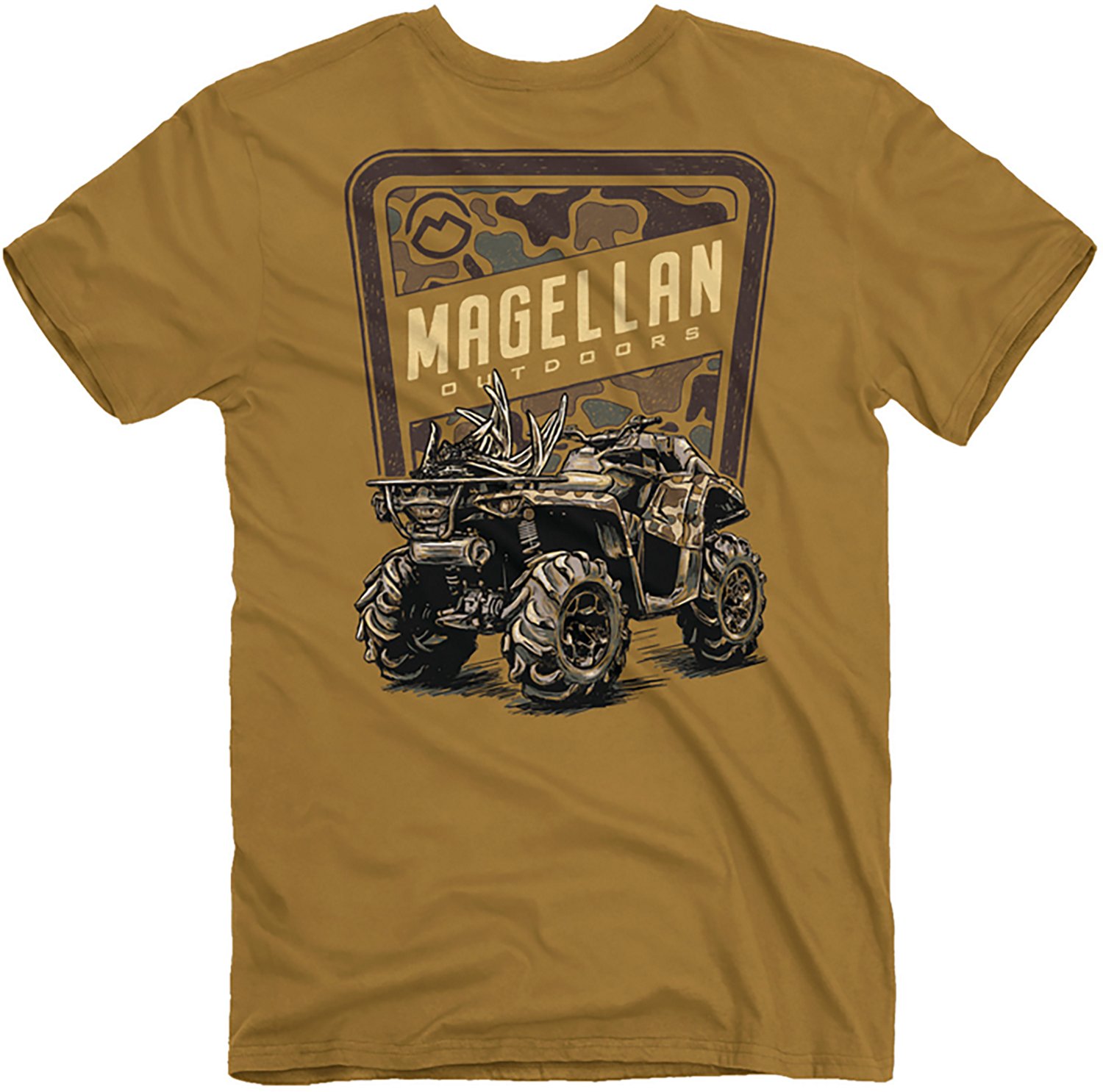 Put your stylish side on display when you wear the Magellan Outdoors Men's ATV Camo T-shirt. The 100% cotton construction provides a soft, comfortable feel, while the screen-printed graphic design adds an eye-catching appearance.