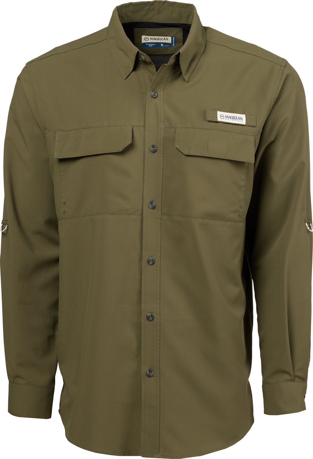 Get outside in the Magellan Outdoors Men's Barton Creek Outdoor Long Sleeve Shirt. This long-sleeve shirt is made with woven polyester for a soft feel, while the UPF 30 treatment offers protection from the sun. Plus, the moisture-wicking technology helps keep you dry.