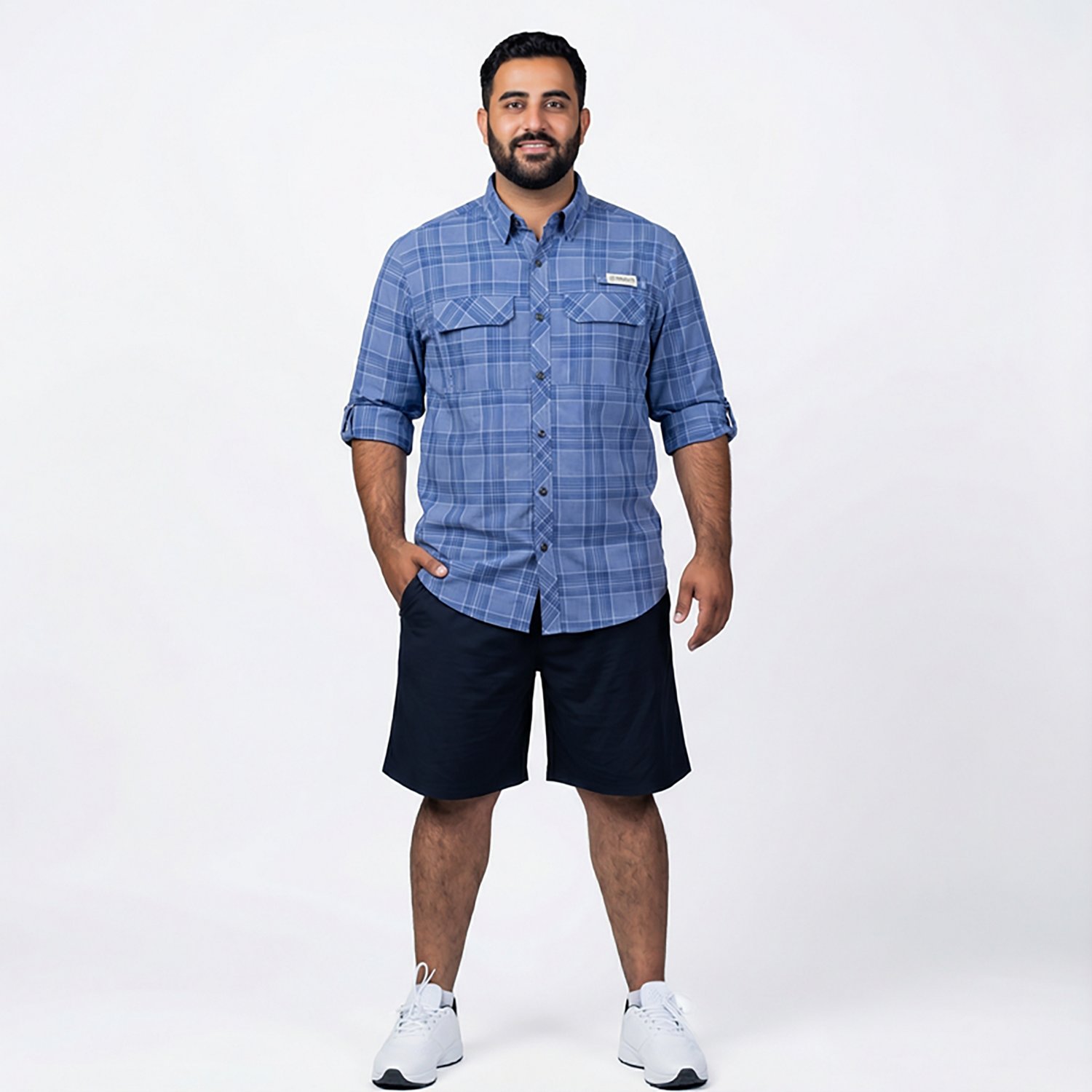 Stay dry and protected while outside in the Magellan Outdoors Men's Barton Creek Outdoor Plaid Long Sleeve Shirt. This long-sleeve shirt is made with polyester plain weave for a soft feel, while the UPF 30 treatment offers protection from the sun.