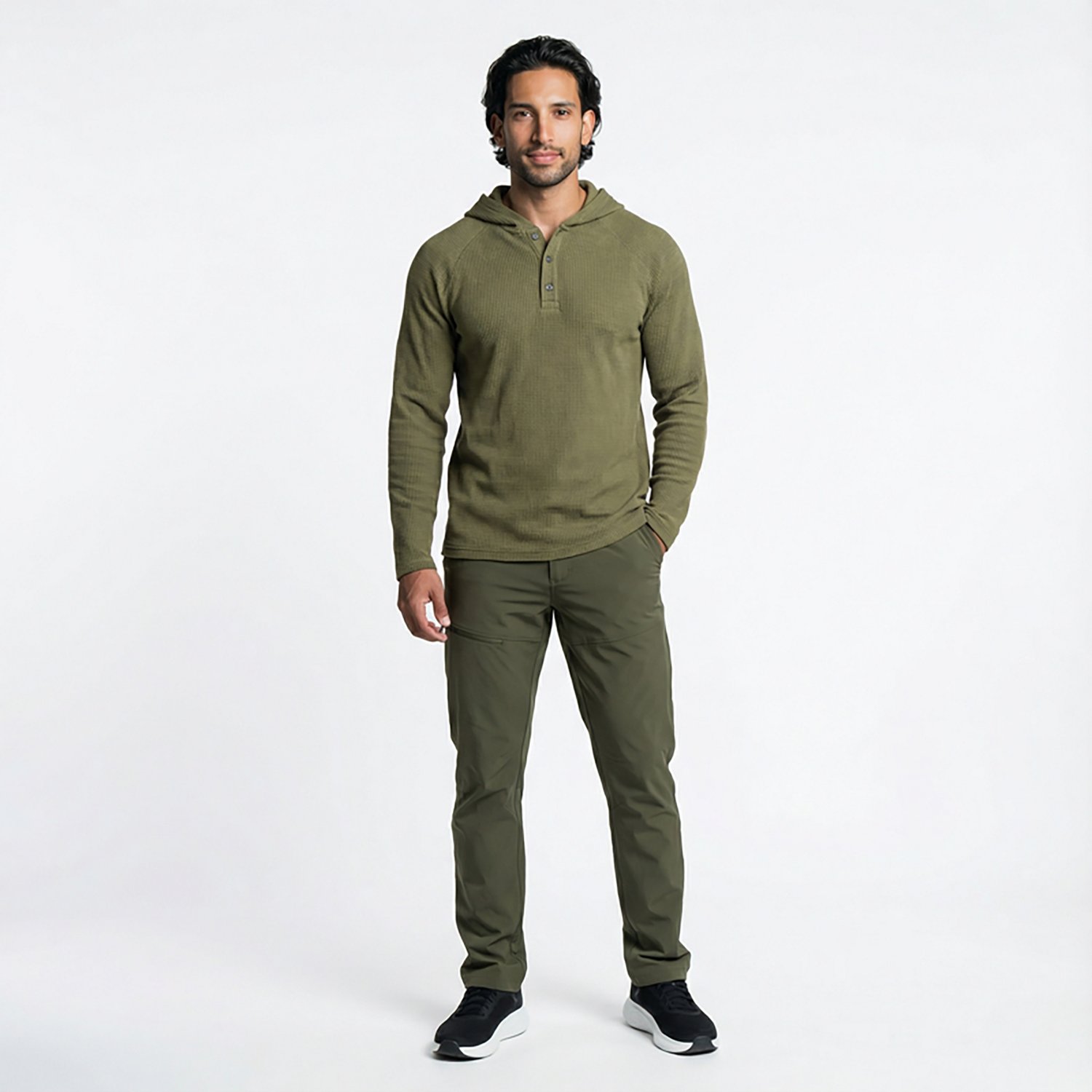 Layer up for chilly weather in the Magellan Outdoors Men's Base Camp Thermal Hoodie. The rayon, polyester and nylon blend helps keep you comfortable throughout the day, while the Flex technology promotes freedom of movement. The moisture-wicking technology offers a dry feel, while the attached hood provides protection from the elements.
