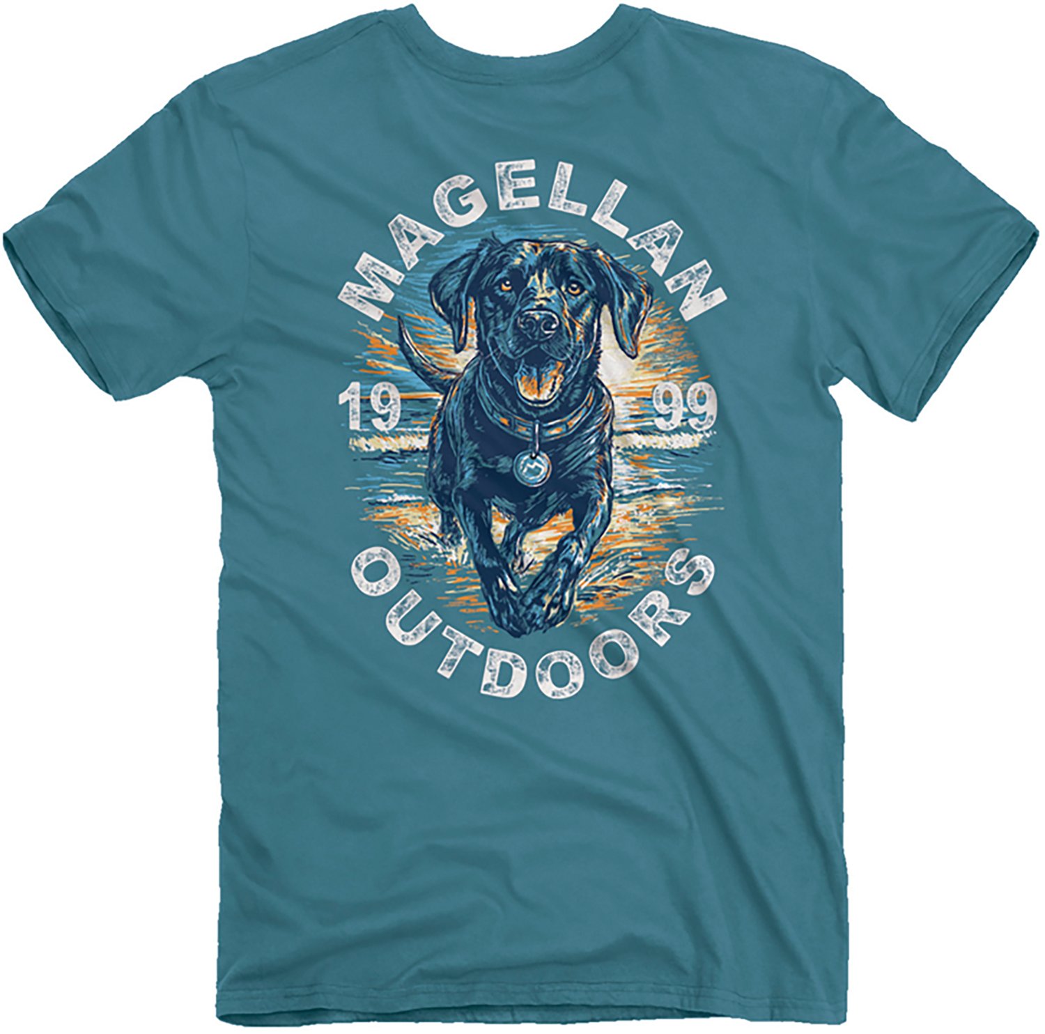 Embrace your love for the outdoors in the Magellan Outdoors Men's Beach Dog T-Shirt. This comfortable tee is soft enough for all-day wear with its cotton-polyester blend, while a screen-printed dog on the beach highlights your adventurous spirit.
