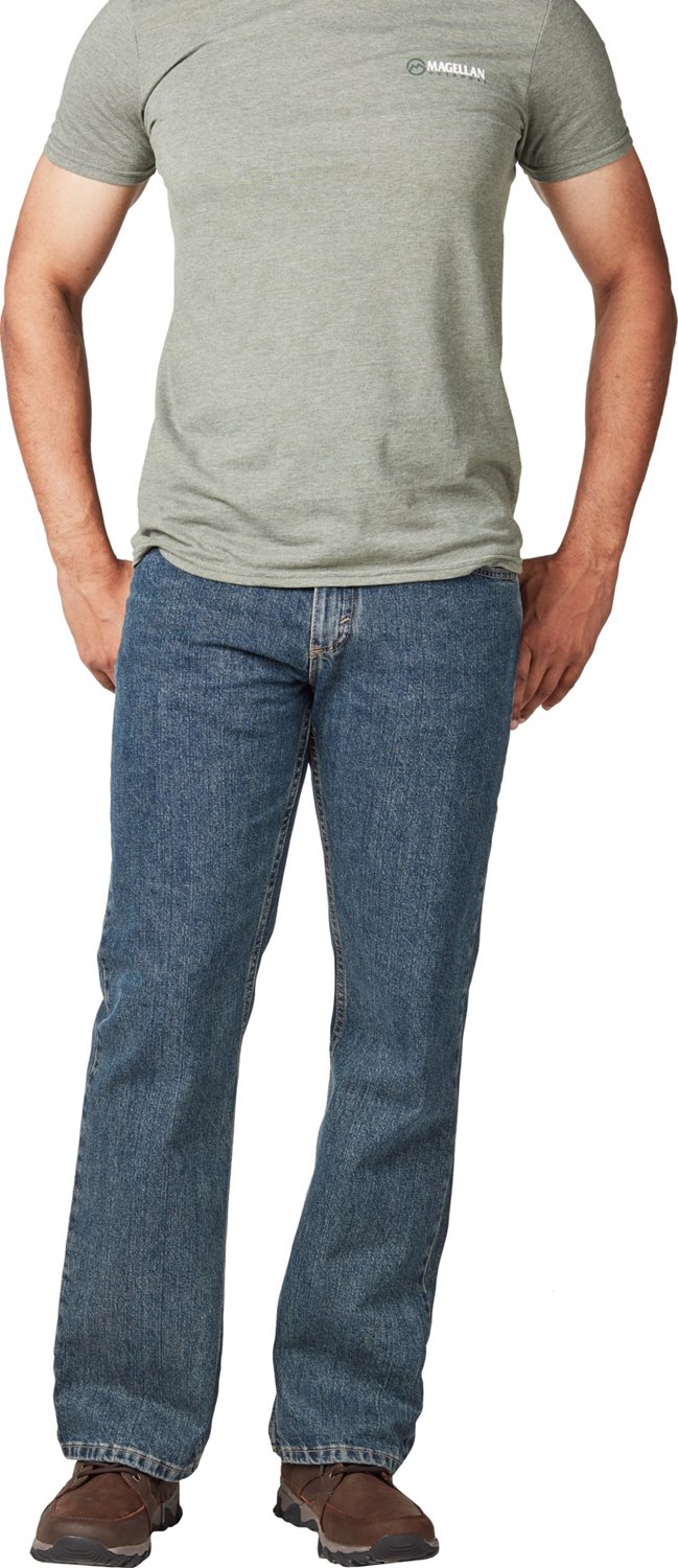 Designed to give you the classic boot-cut look you love, the Magellan Outdoors Men's Boot Cut Jeans are comfortable thanks to the 100% cotton construction. These jeans feature an original fit and a 5-pocket design with a floating watch pocket.