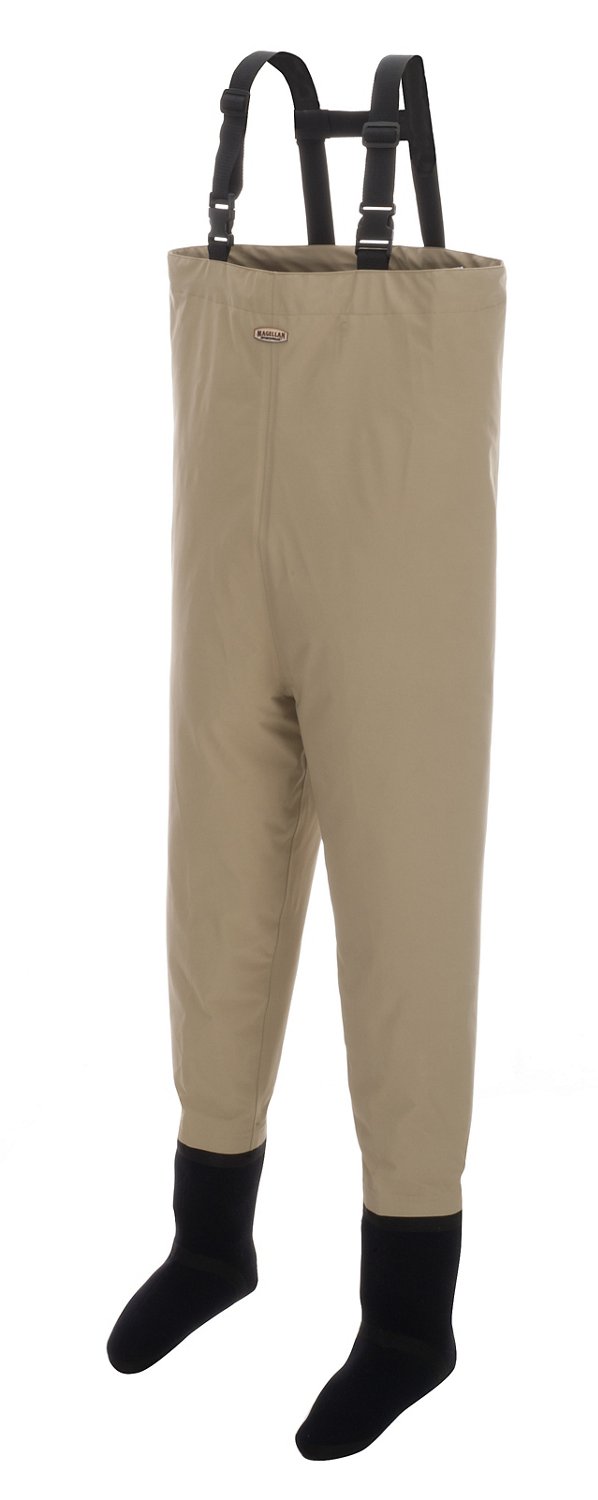 The Magellan Outdoors™ Men's Breathable Stocking-Foot Waders feature 3-ply lightweight and breathable 85% polyester and 15% synthetic fabric and stocking feet that contour to the shape of each foot. Adjustable suspenders with quick-release buckles.