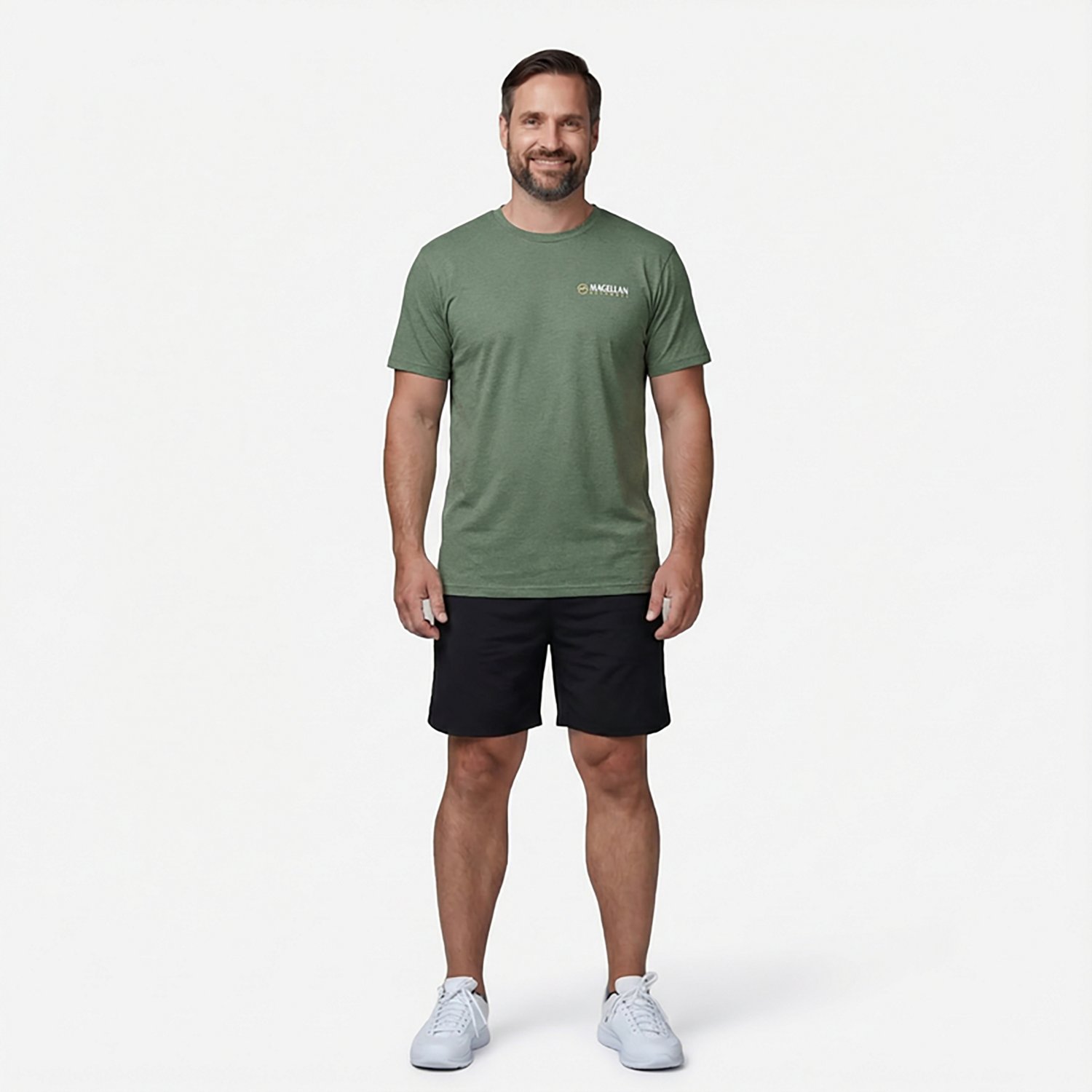 Show off your sense of style when you wear the Magellan Outdoors Men's Buck Pose T-shirt. The polyester and cotton construction offers a comfortable feel all day long, while the screen-printed graphics add an eye-catching appearance.