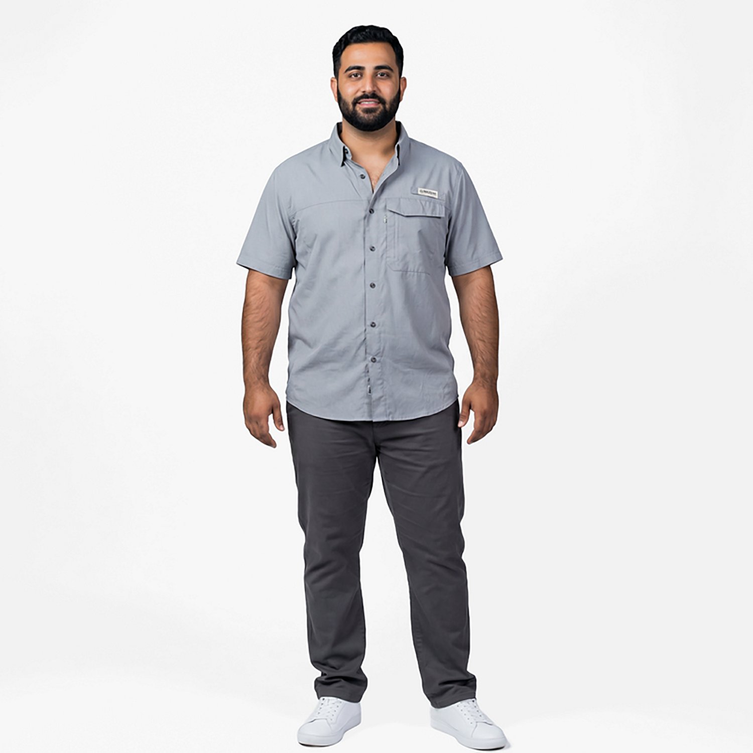 Feel comfortable out on the open water when you sport the Magellan Outdoors Men's Caddo Lake Button Down Fishing Shirt. The 100% polyester woven construction delivers a soft, lightweight feel, while moisture-wicking technology keeps sweat at bay. Plus, the UPF 30 protectant safeguards against UV rays. Cape back.