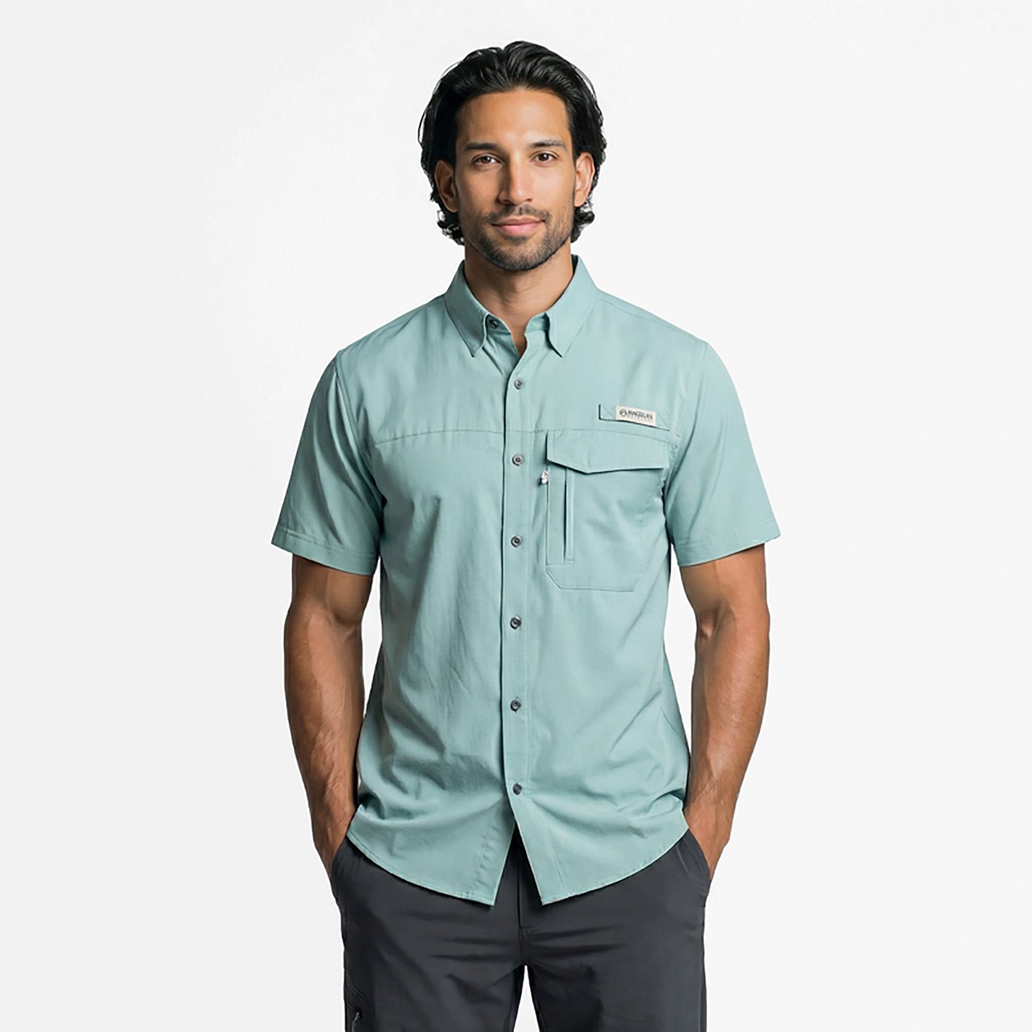 Feel comfortable out on the open water when you sport the Magellan Outdoors Men's Caddo Lake Button Down Fishing Shirt. The 100% polyester woven construction delivers a soft, lightweight feel, while moisture-wicking technology keeps sweat at bay. Plus, the UPF 30 protectant safeguards against UV rays. Cape back.