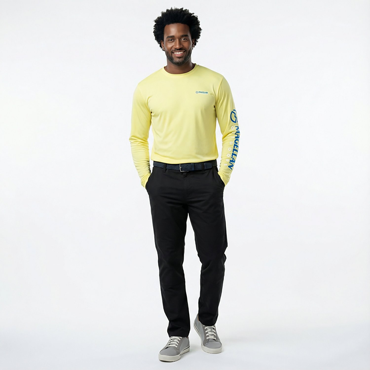 Enjoy your day in comfort with the Magellan Outdoors Men's Casting Crew Core Graphic Long Sleeve T-shirt. The moisture-wicking design prevents accumulation of sweat and moisture to keep you dry, while the UPF 50 rating protects you from the sun. The polyester construction provides comfort that lasts the whole day, and the graphic design offers an eye-catching appearance.
