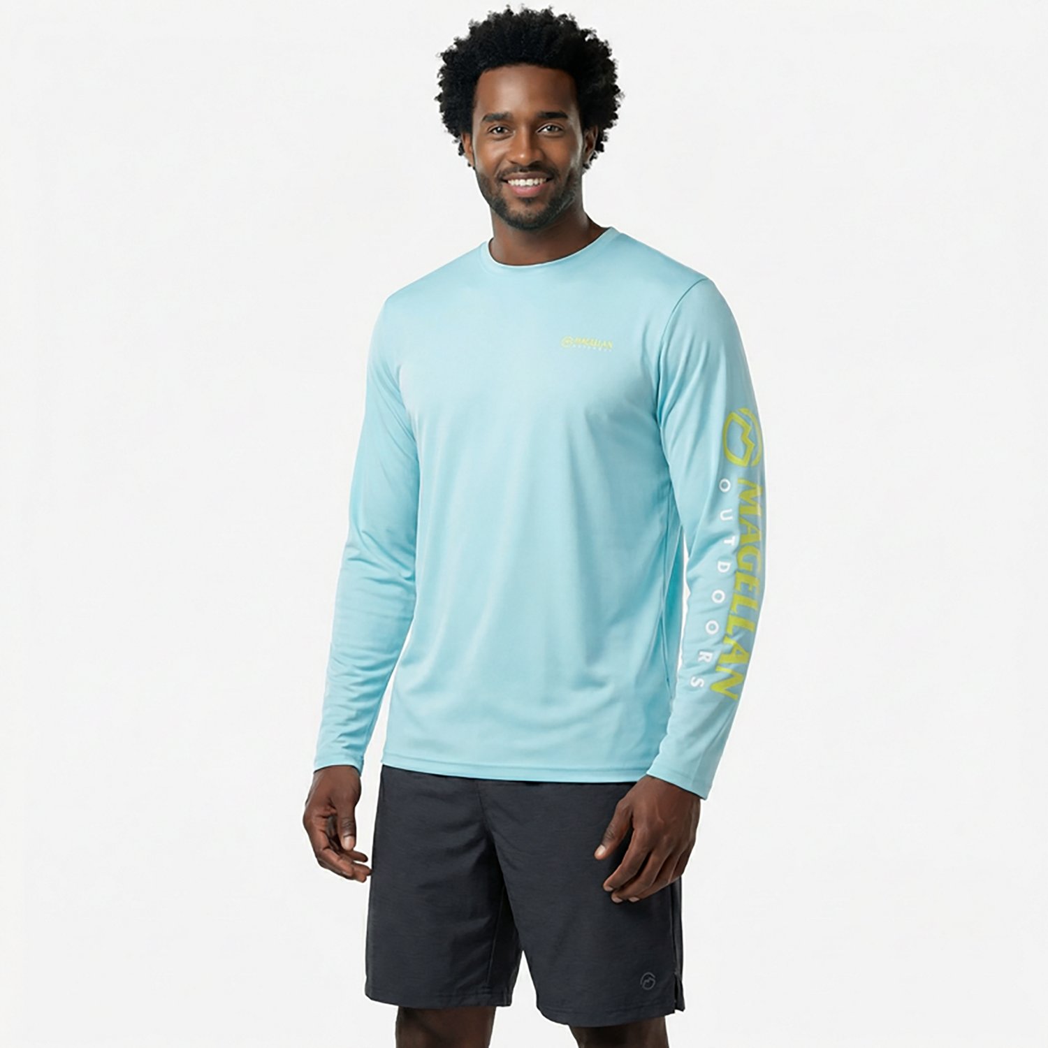 Enjoy your day in comfort with the Magellan Outdoors Men's Casting Crew Core Graphic Long Sleeve T-shirt. The moisture-wicking design prevents accumulation of sweat and moisture to keep you dry, while the UPF 50 rating protects you from the sun. The polyester construction provides comfort that lasts the whole day, and the graphic design offers an eye-catching appearance.