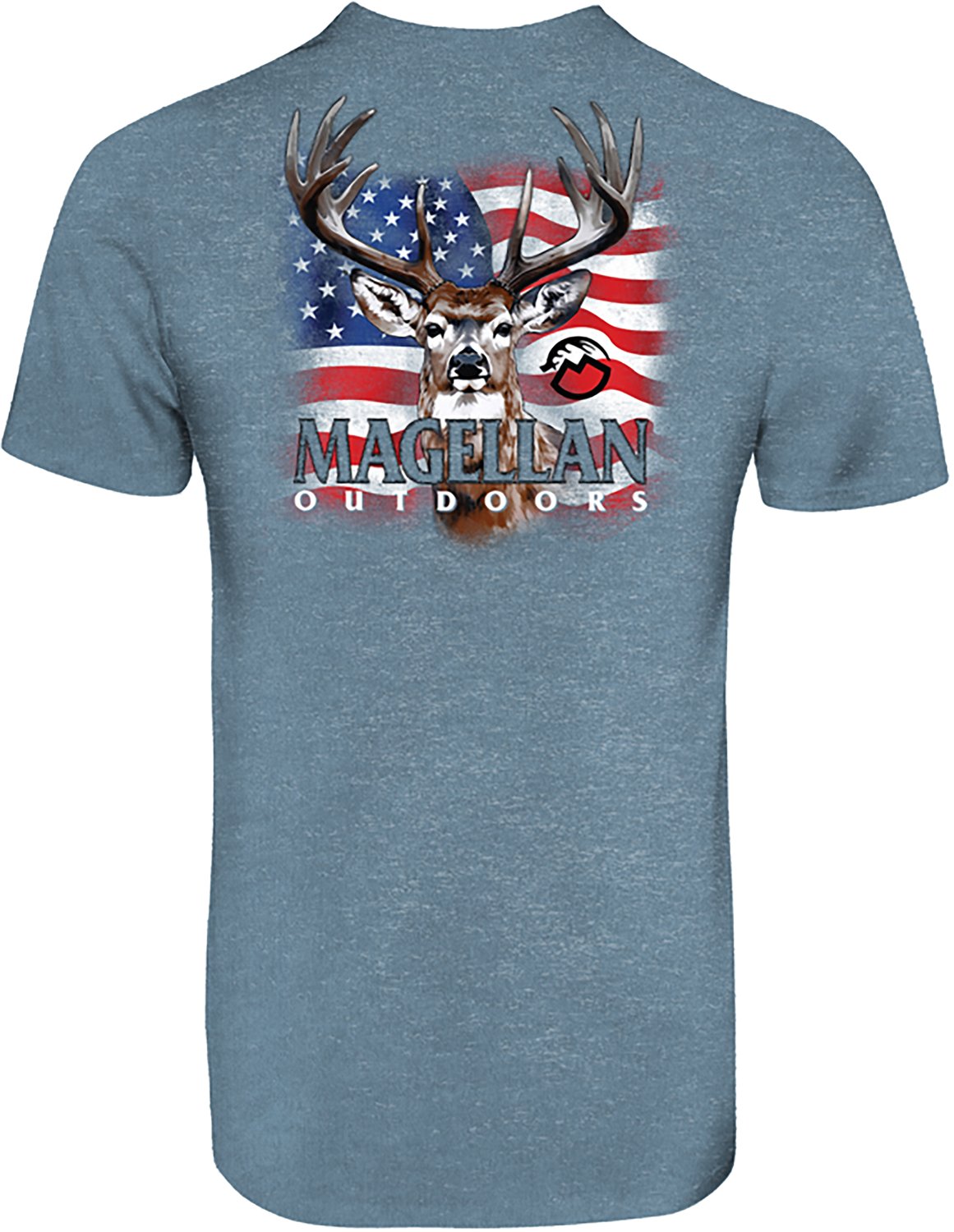 Show off your sense of style when you wear the Magellan Outdoors Men's Crosshatch Flag T-shirt. The polyester and cotton construction offers a comfortable feel all day long, while the screen-printed graphics add an eye-catching appearance.