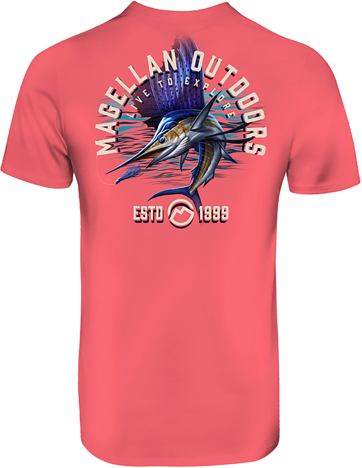 Put your stylish side on display with the Magellan Outdoors Men's Dive Sail T-shirt. This shirt is crafted with cotton material to help keep you comfortable throughout the day, and the screen-printed graphic design delivers an eye-catching appearance.