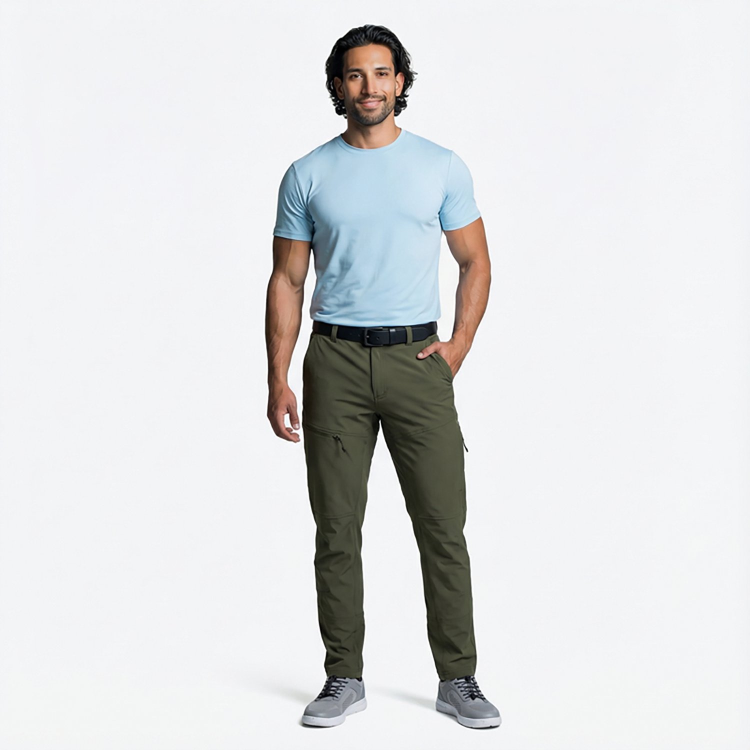 Adventure comfortably in the Magellan Outdoors Men's Explorer Trek Pants. This lightweight stretchy pants are made of nylon and spandex that repel water and shield your skin from UV rays for all-day comfort and protection. The ventilated material helps you stay cool, while the tapered legs add style.
