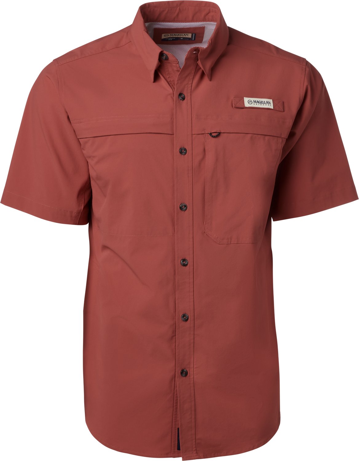 Stay comfortable and presentable outdoors in this Magellan Outdoors Men's Explorer Trek Short Sleeve T-shirt. It is made of 87% nylon and 13% spandex for a lightweight feel and a stretchy fit, and the T-shirt features moisture-wicking fabric to help keep you dry.