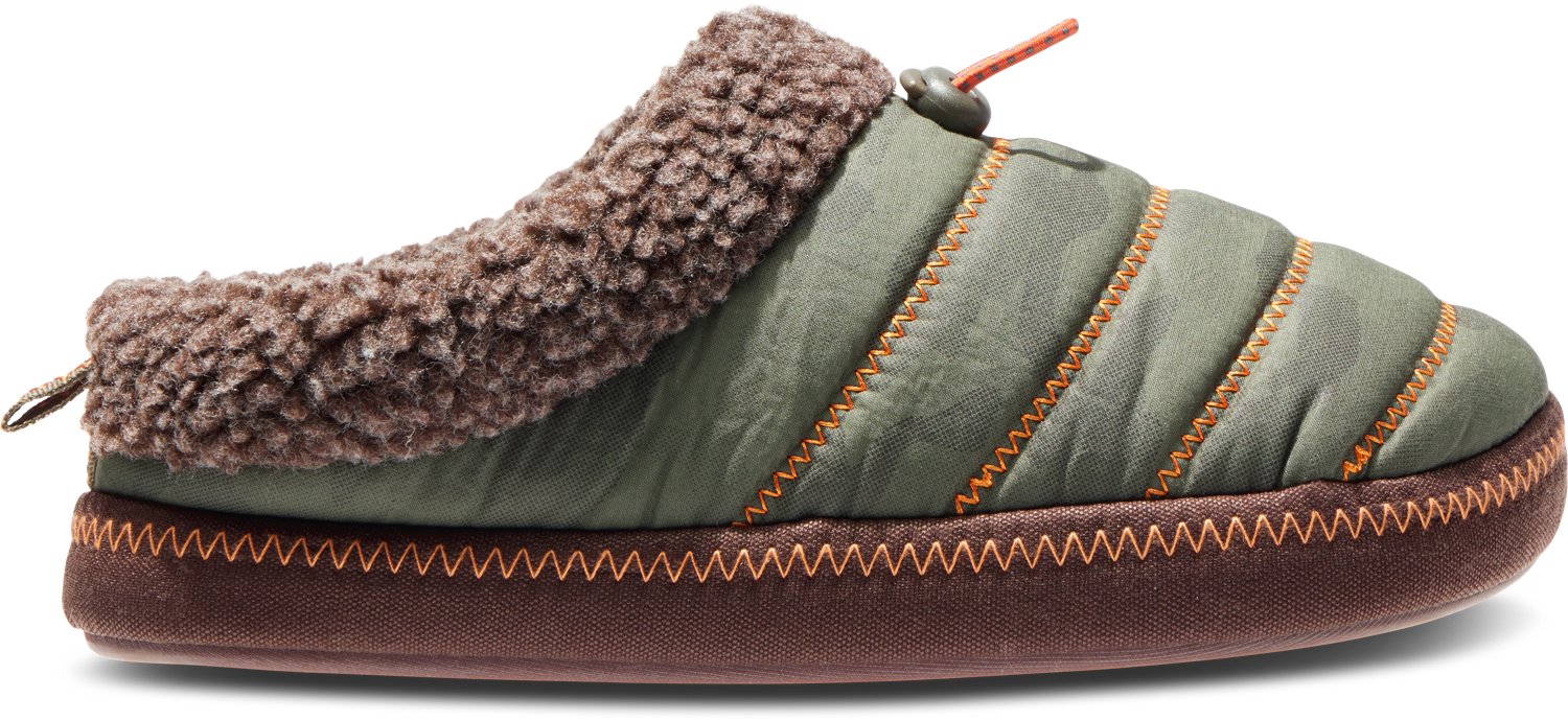 Keep your feet toasty with the Magellan Outdoors Men's Fashion Puffer Mules. The textile uppers afford durability, while the footbeds offer lasting comfort. The Faux fur linings provide warmth, and the bungee closures ensure a snug fit.