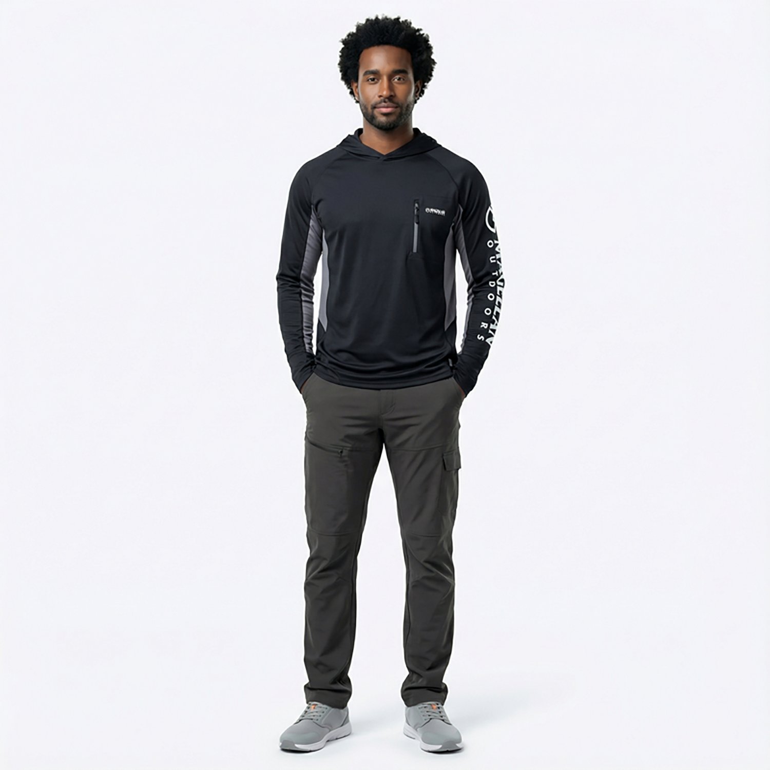 Look your best in the Magellan Outdoors Men's Fish Gear Angler Long Sleeve Hoodie. It is made of 87% recycled polyester and 13% spandex. The moisture wicking technology keeps you dry, and its odor resistant technology allows you to remain fresh. The UPF 50 provides protection against the sun so you can stay outside longer.