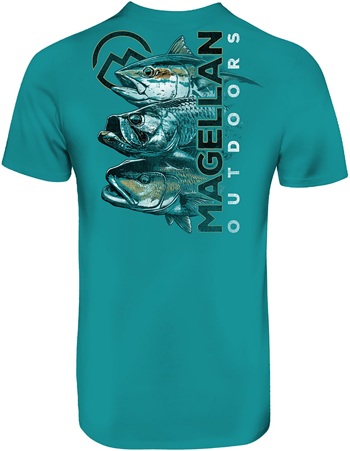 Show off your sense of style when you wear the Magellan Outdoors Men's Fish Race T-shirt. The cotton construction offers a comfortable feel all day long, while the screen-printed graphics add an eye-catching appearance.